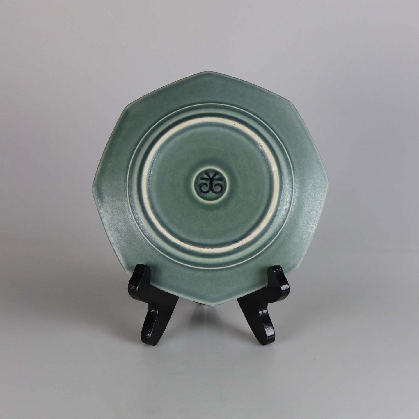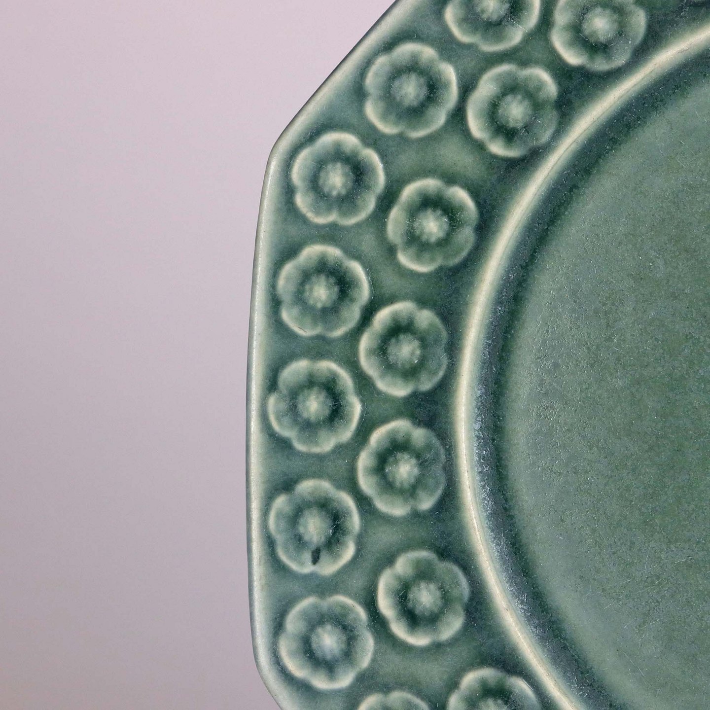 Ottekantet tallerken dekoreret med små blomster rundt i kanten