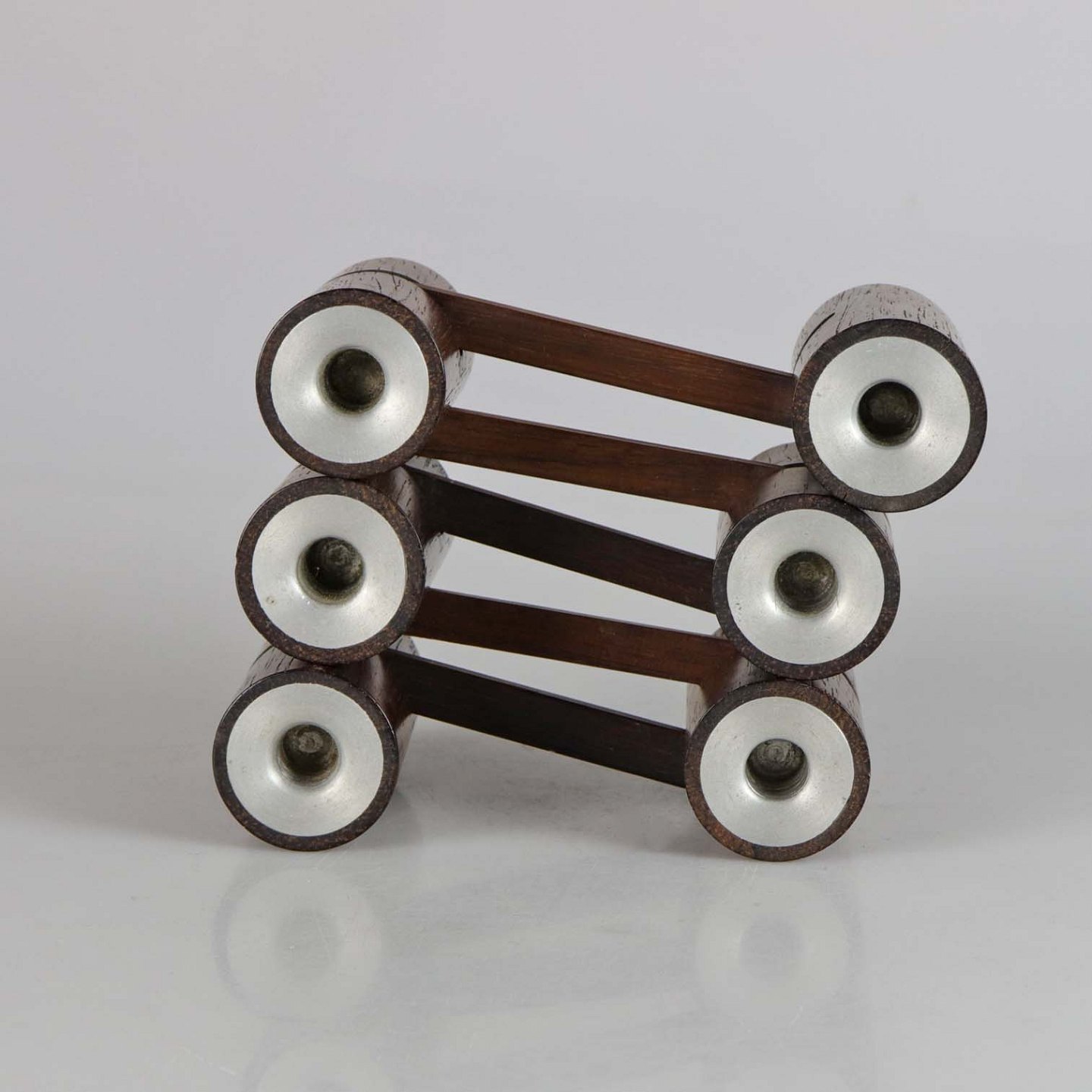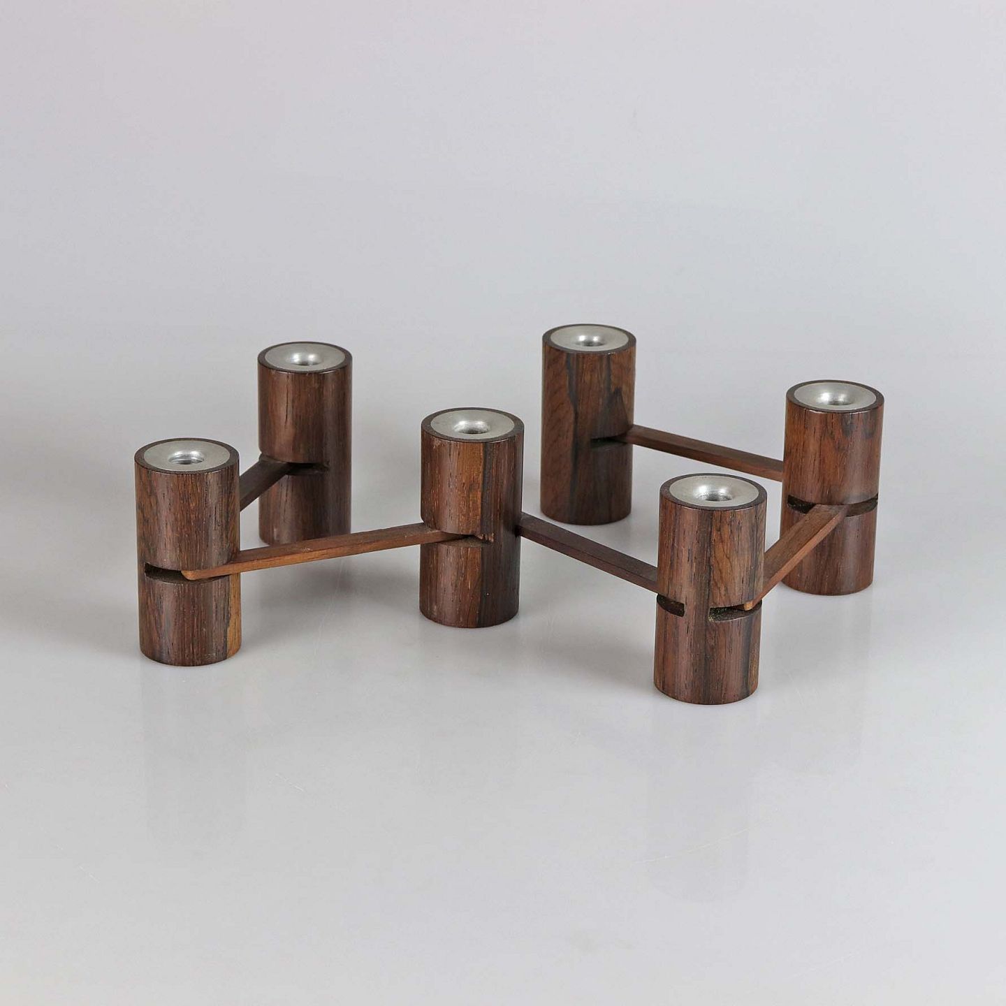 Lysestage i teaktræ med seks bevægelige lysholdere.