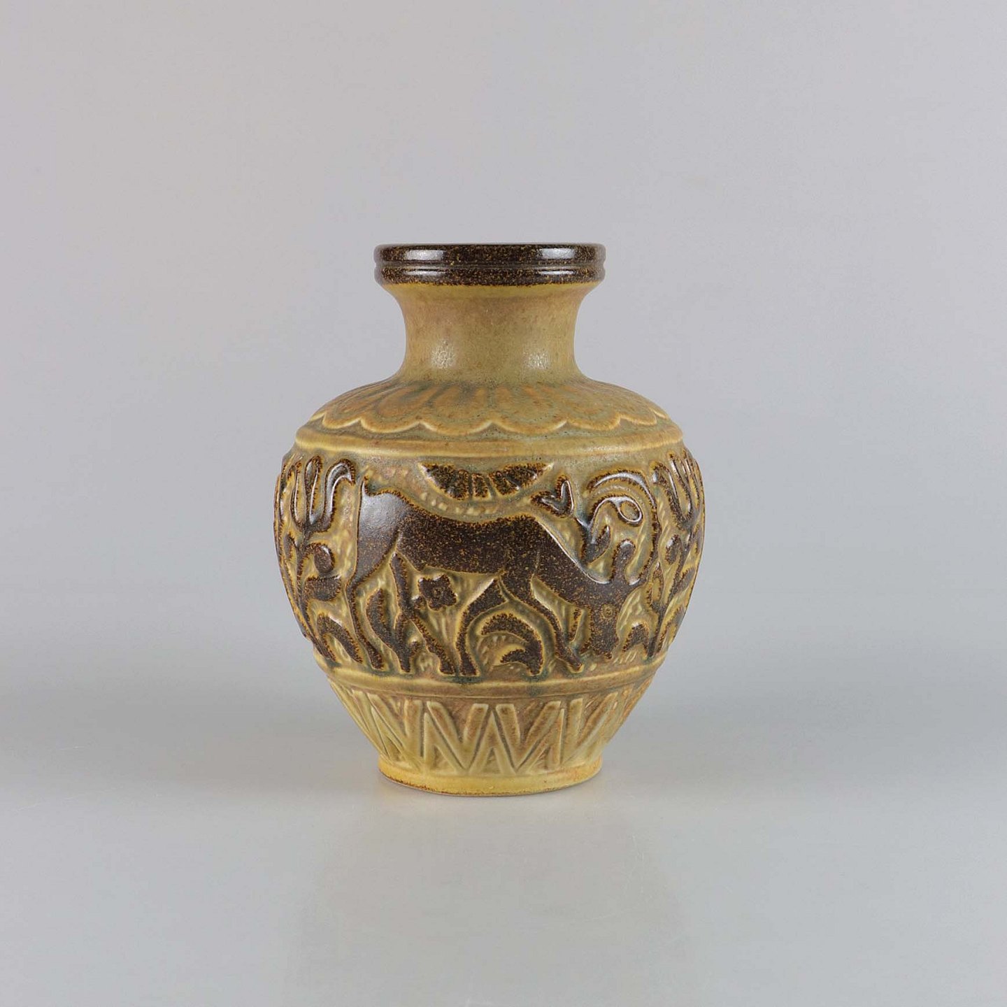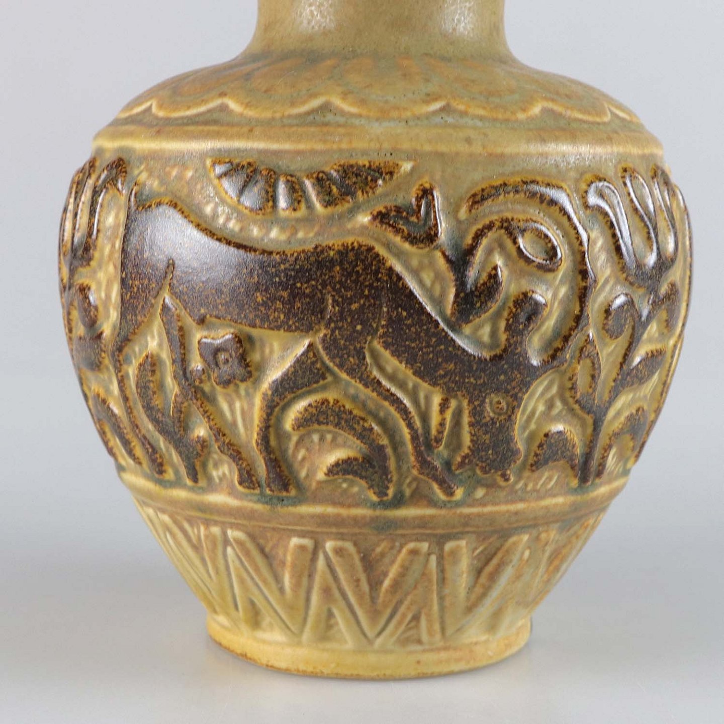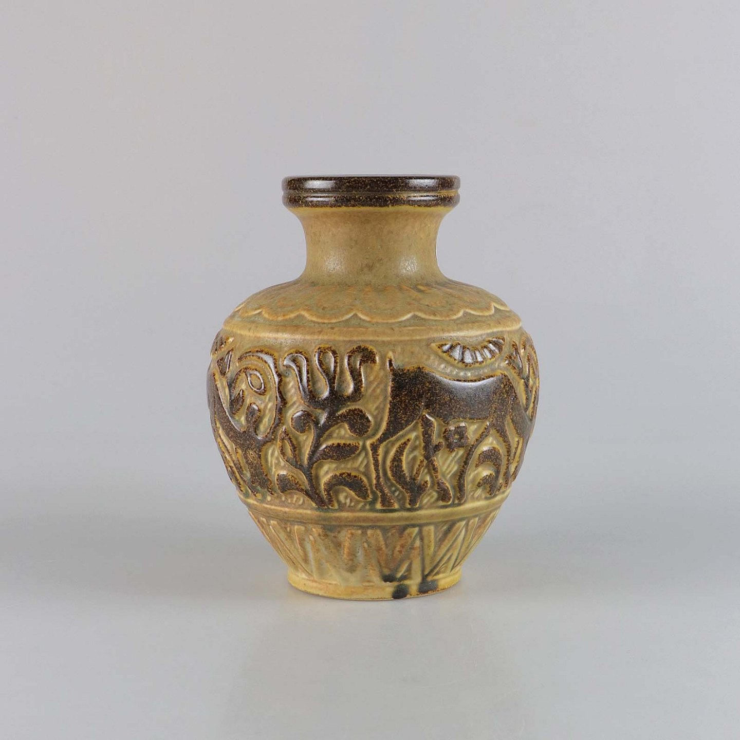 Vase i stentøj med motiv af græssende stenbuk no 6405