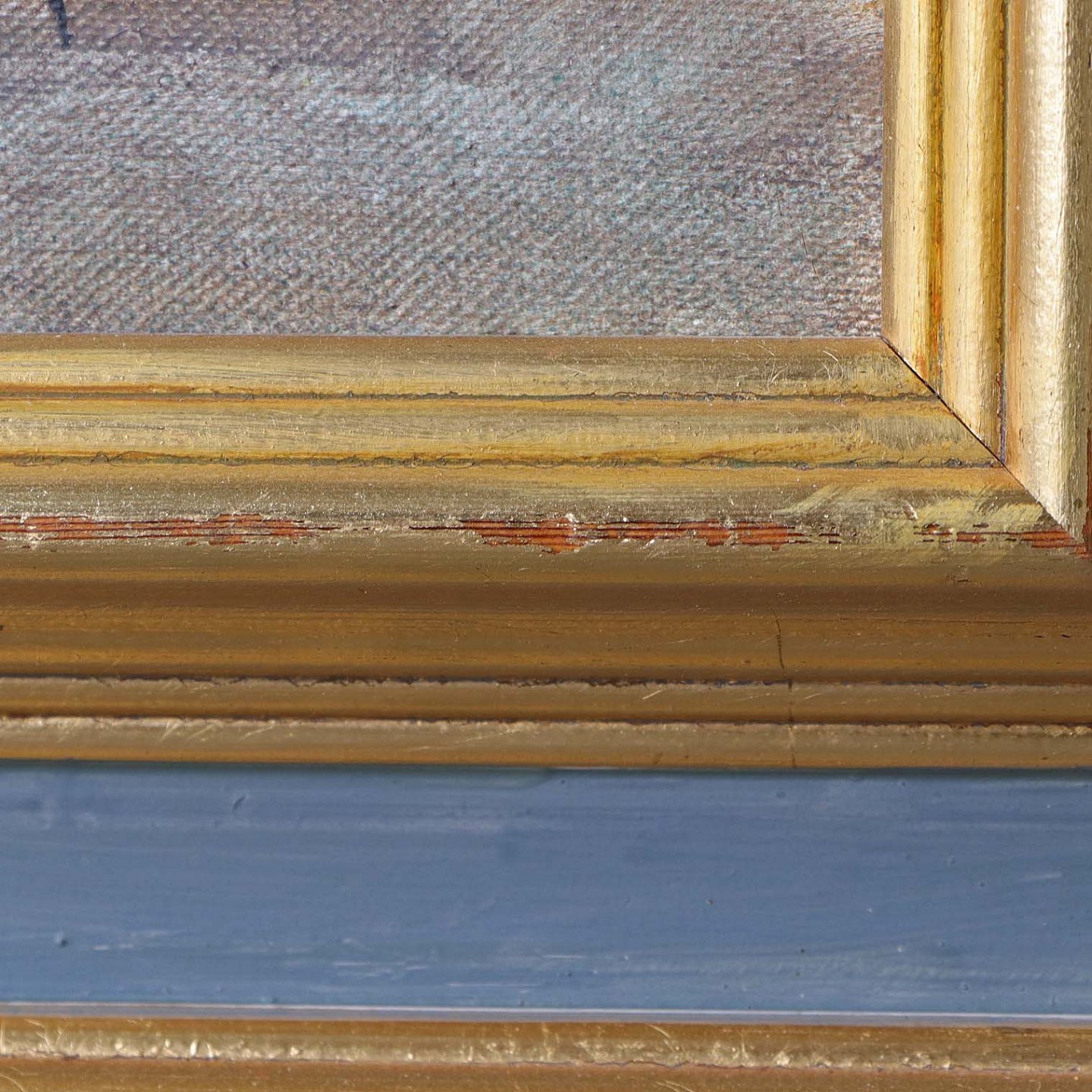 Olie på lærred monteret i forgyldt træramme.