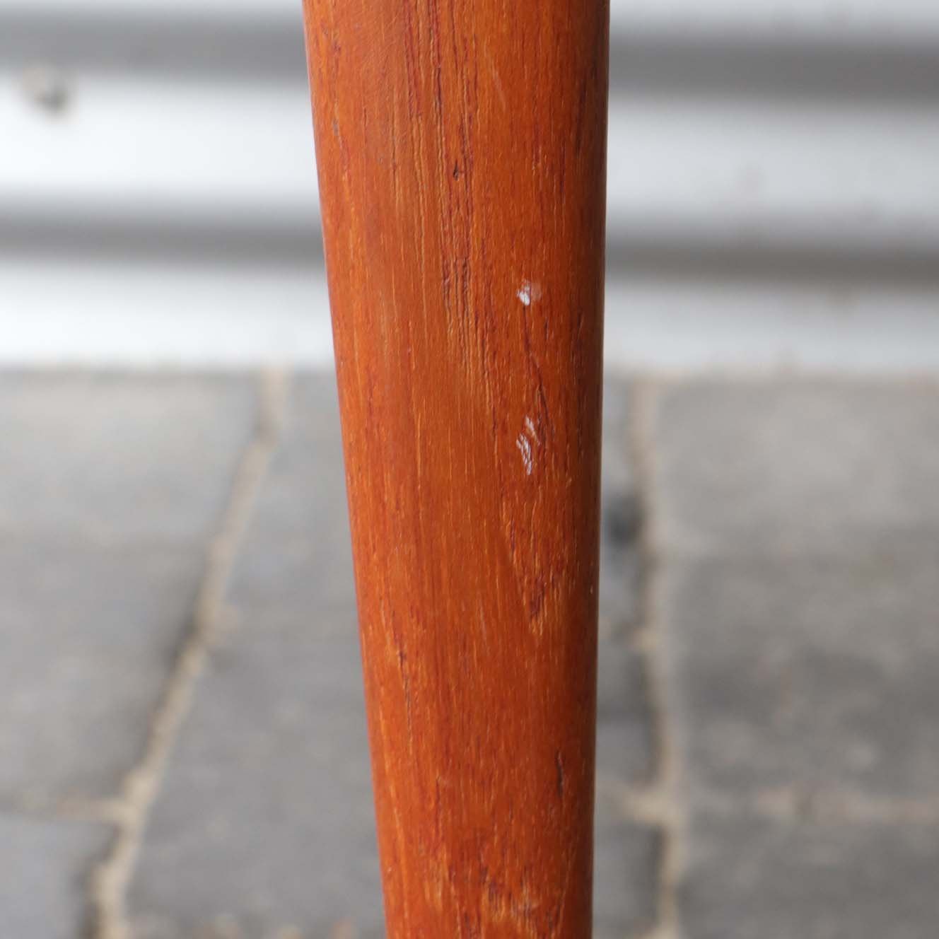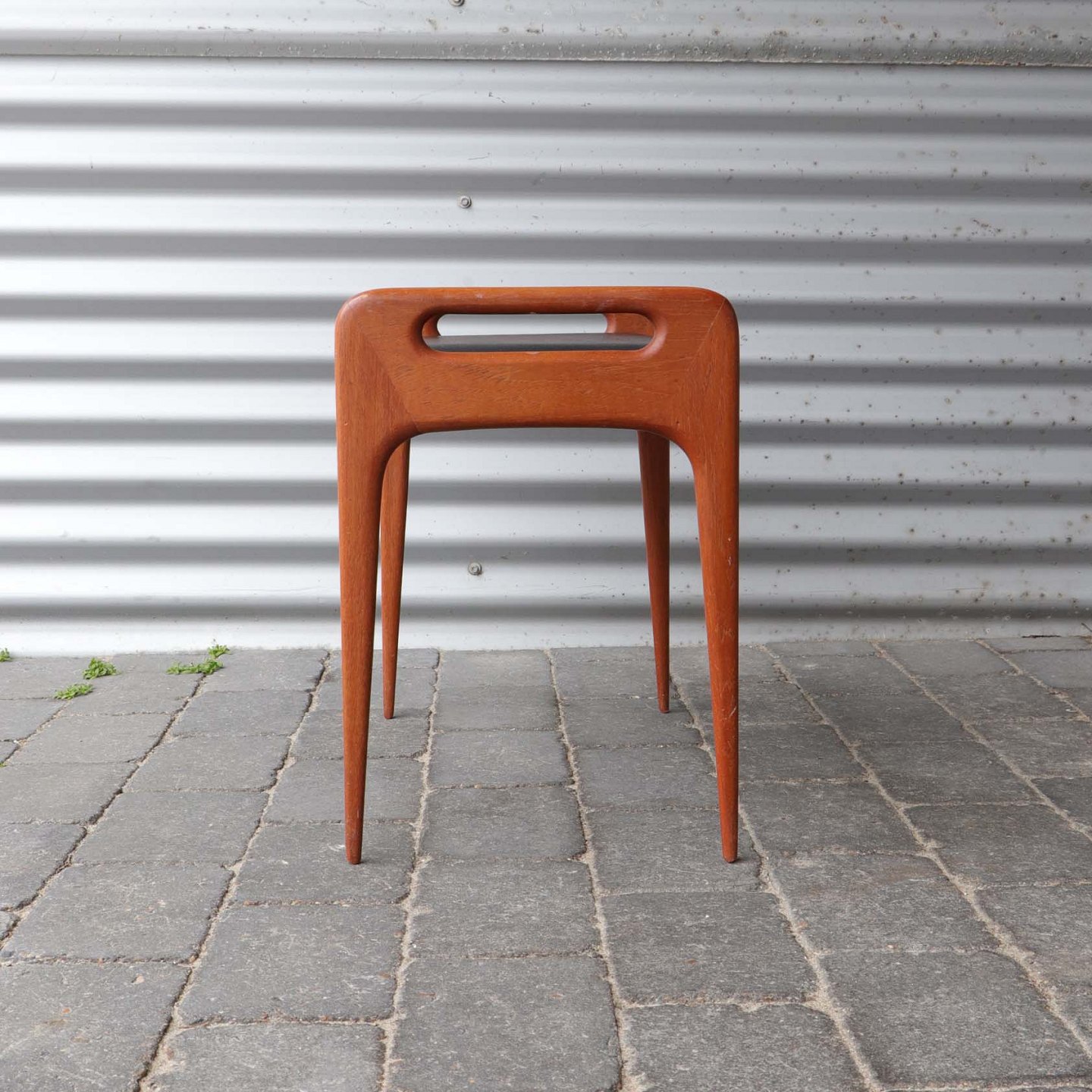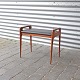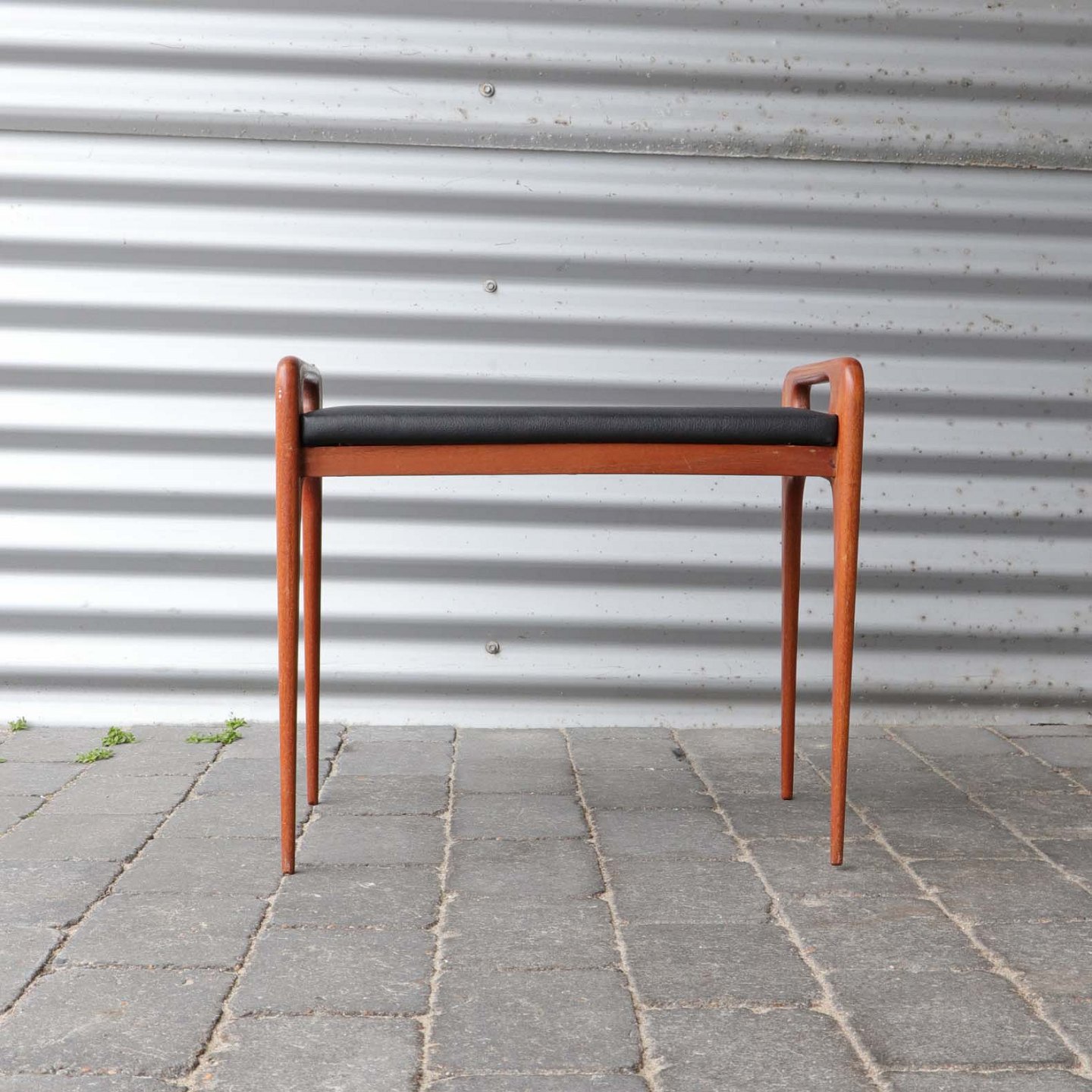 Skammel i lakeret teaktræ med sæde af sort imiteret læder