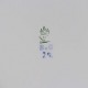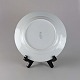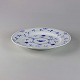 Tallerken i hvidt skælformet porcelæn med blå motiver af blomster og sommerfugle.