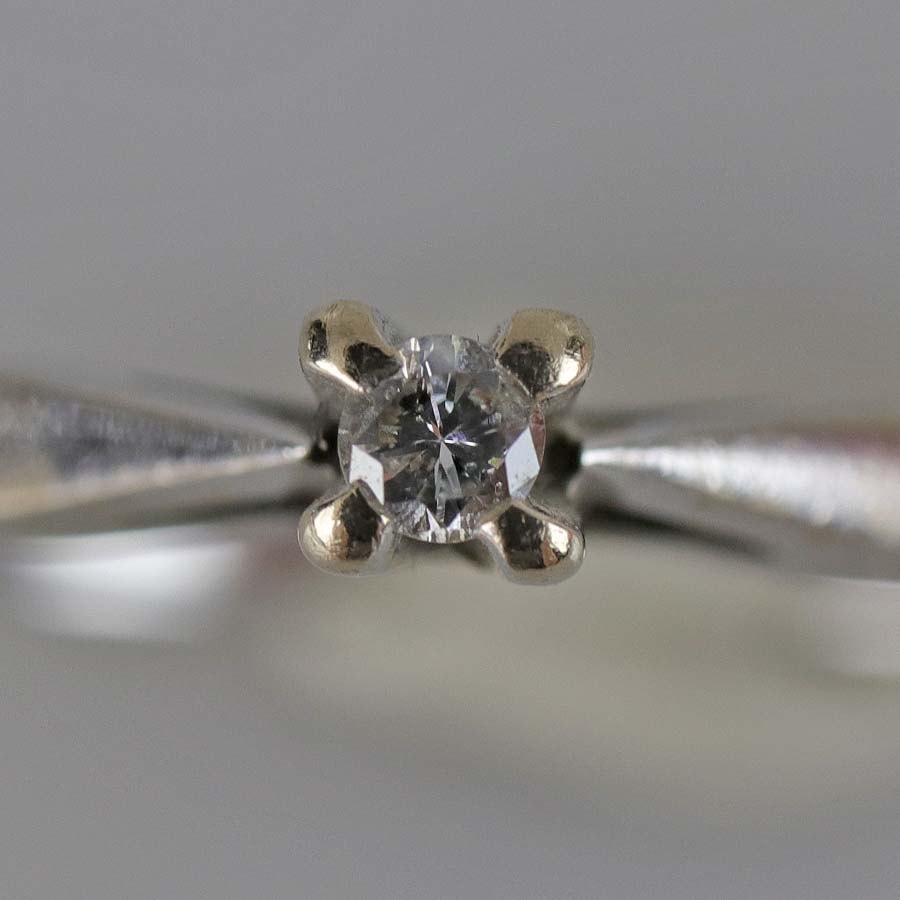 Ring med diamant i 14 karat hvidguld. Størrelse 55