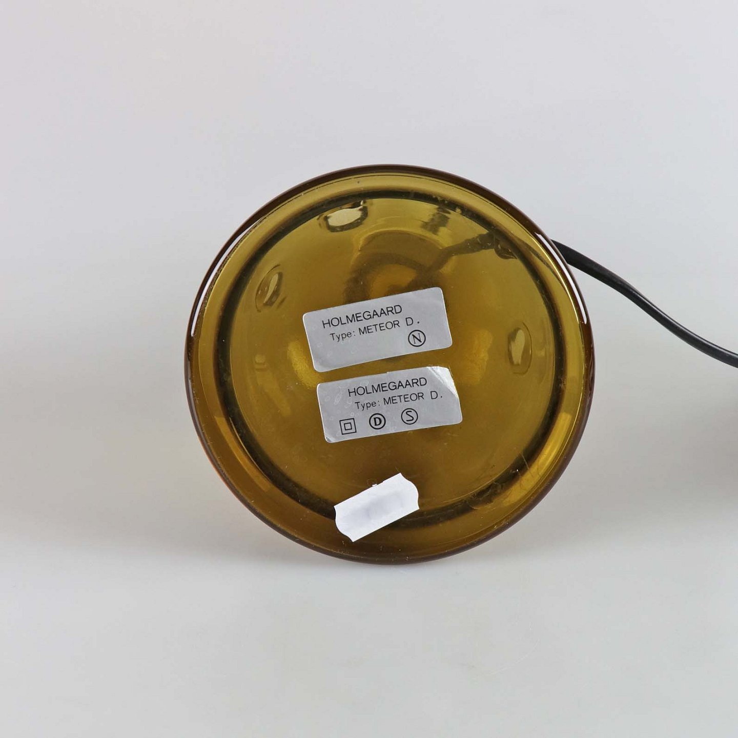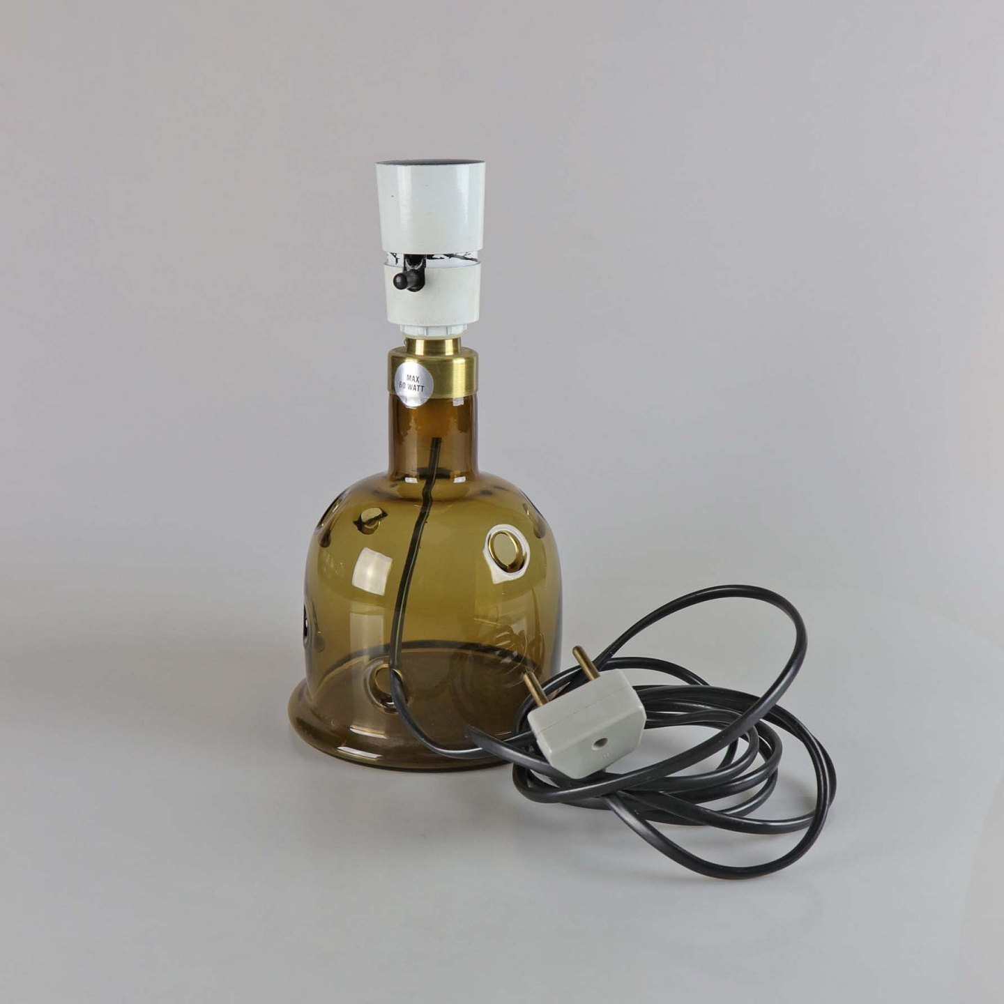 Lampefod i røgfarvet mundblæst glas med huller som mønster