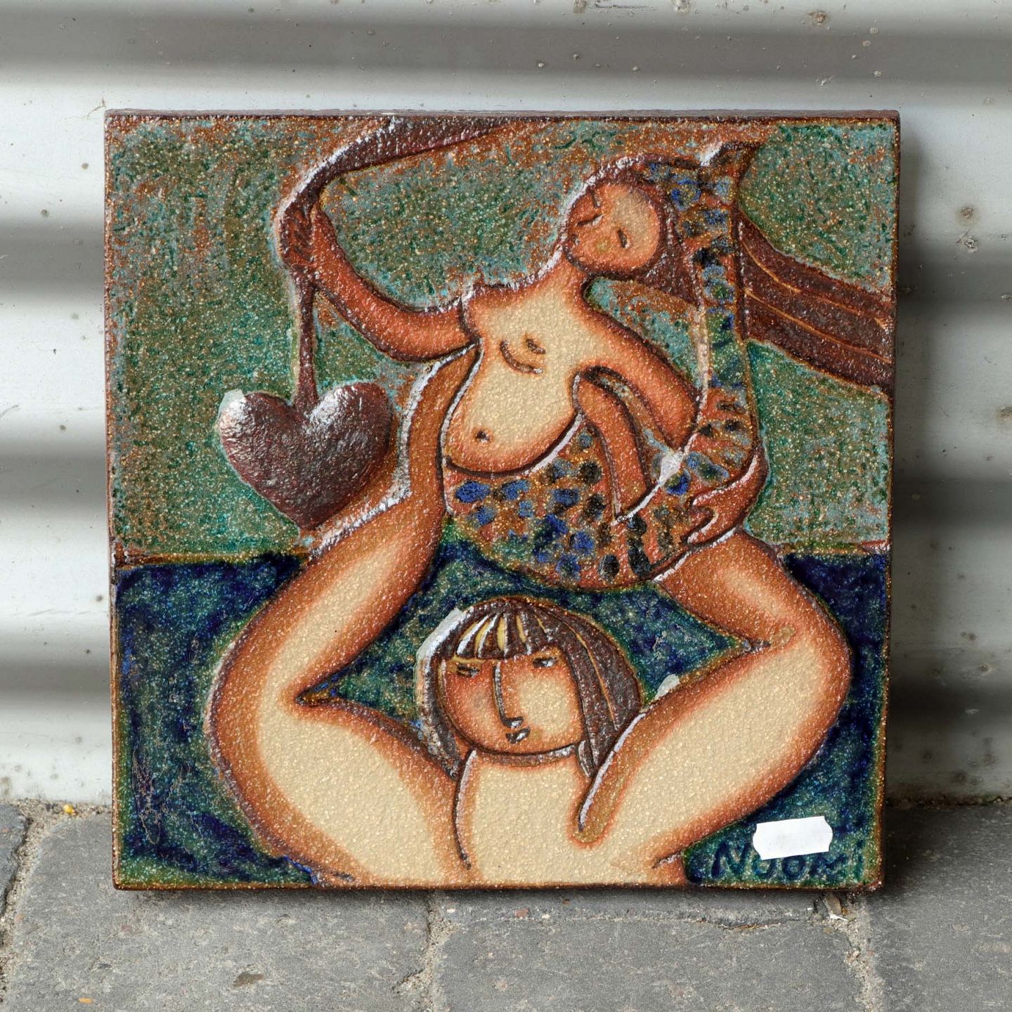 Relief i stentøj med motiv af en mand, som bærer en havfrue no 4007