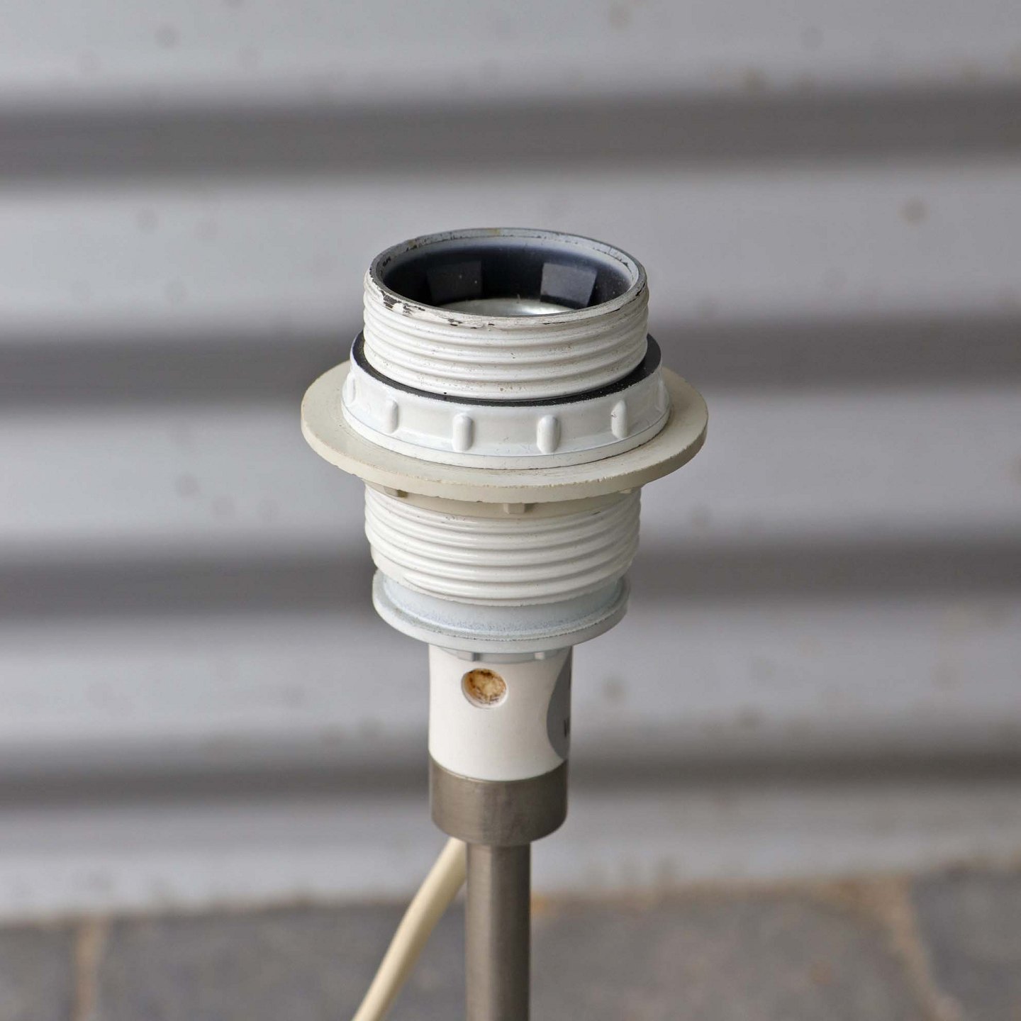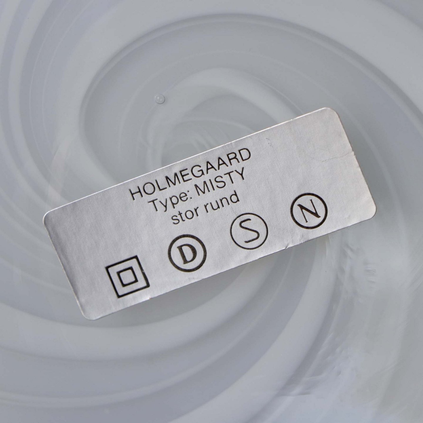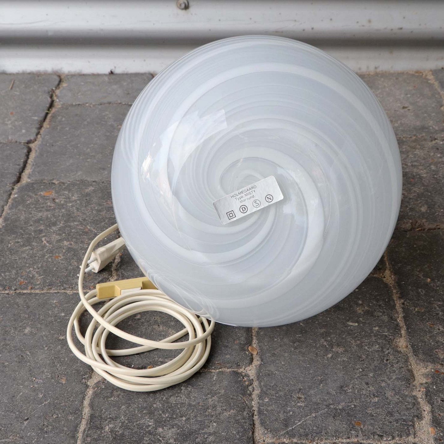 Rund lampefad med opal hvide striber i en spiral