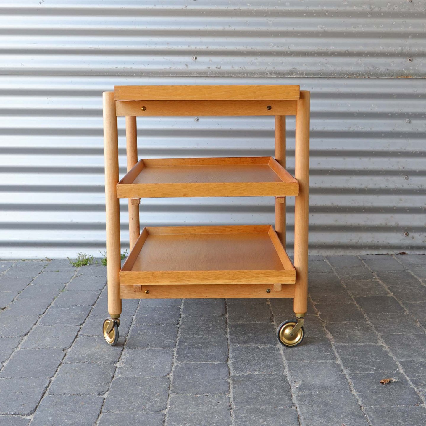 Sjælden rullebord med 3 aftagelige bakker i lakeret egetræ.