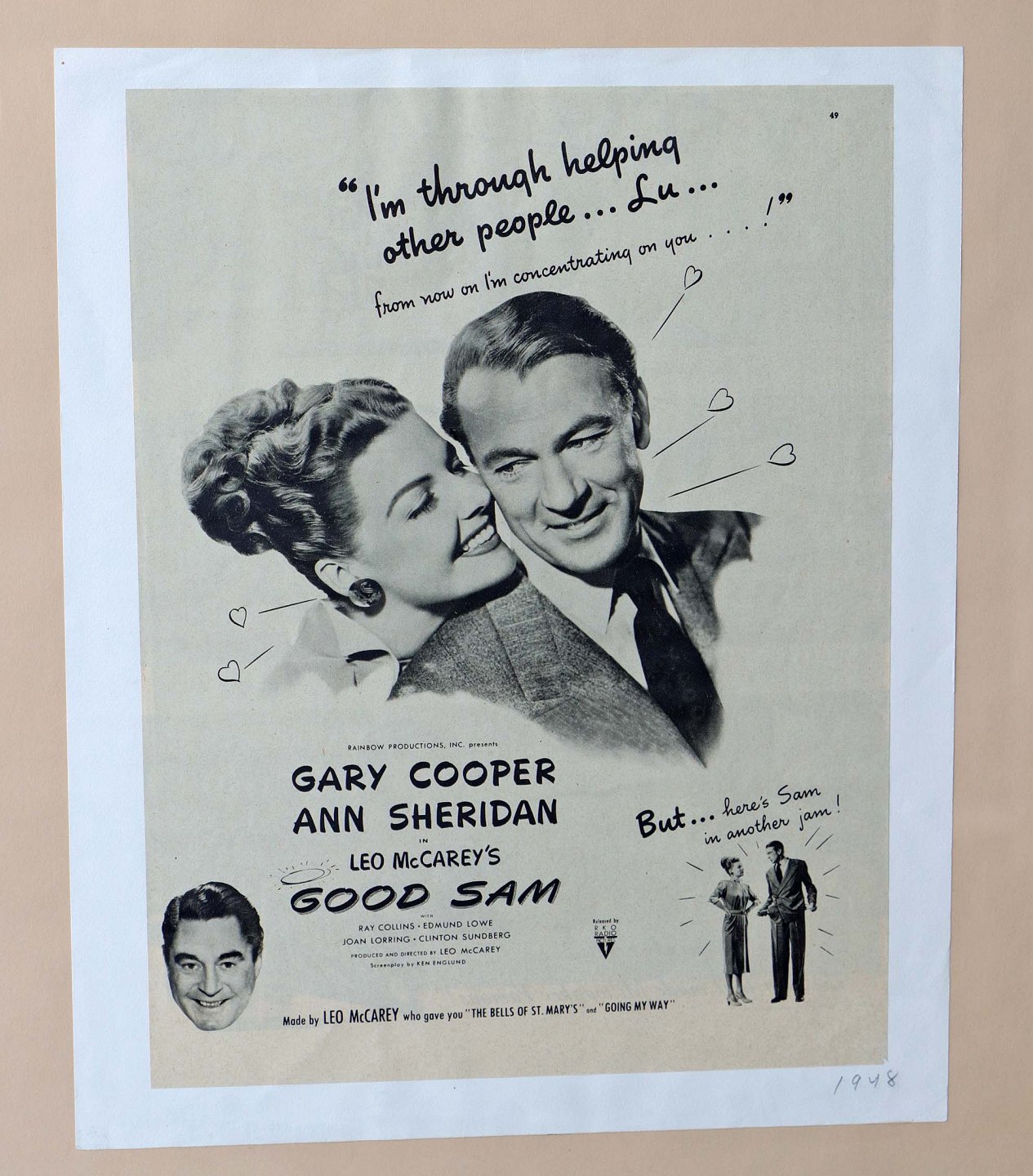 Indrammet filmtryk fra år 1948 med titlen "Good Sam" i gråtoner