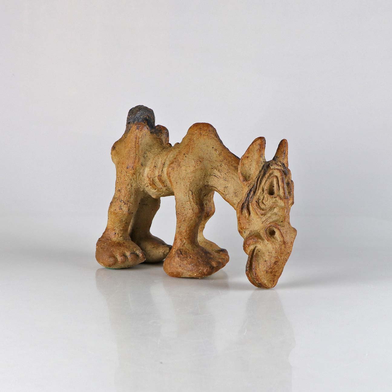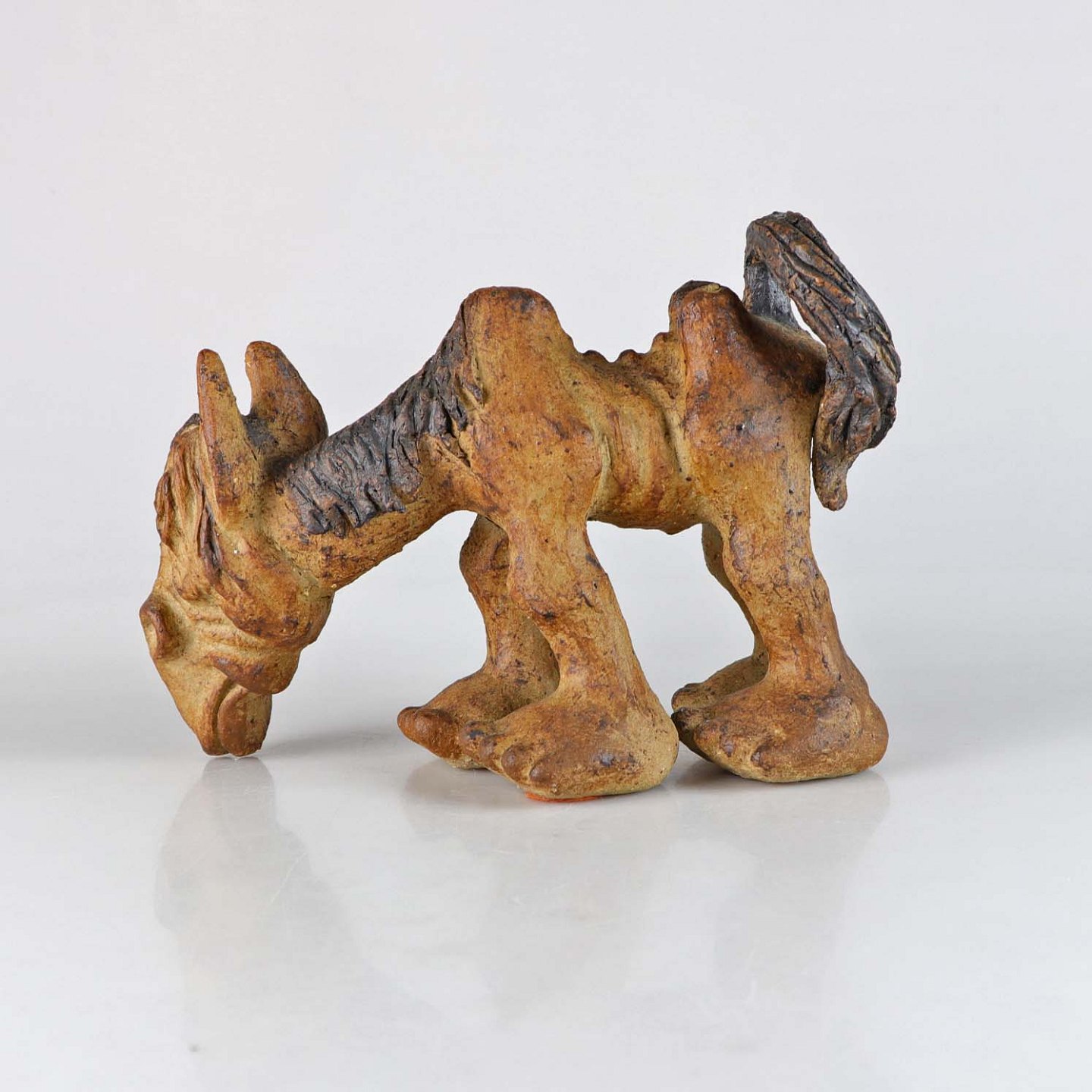 Hest i keramik med bøjet hoved - med tæer (ikke hove)