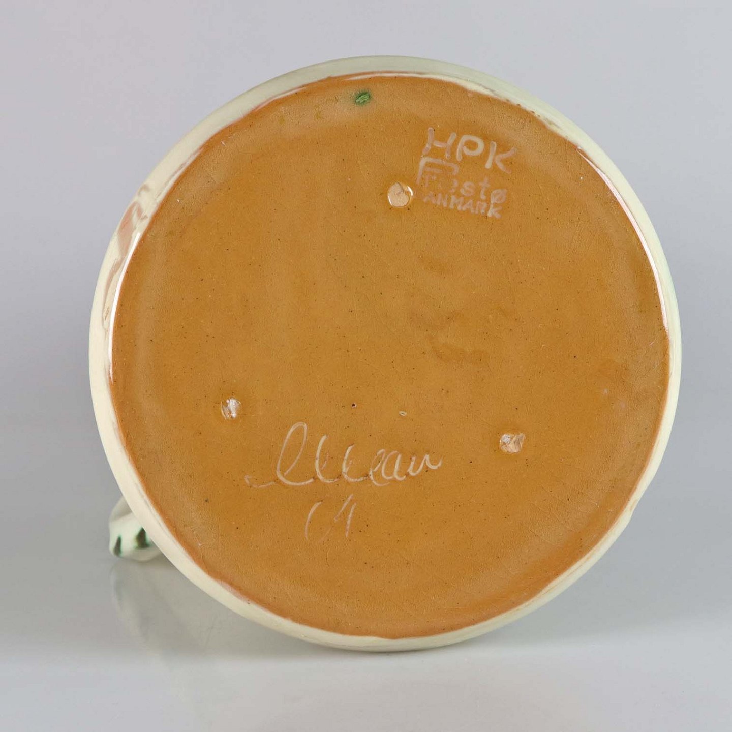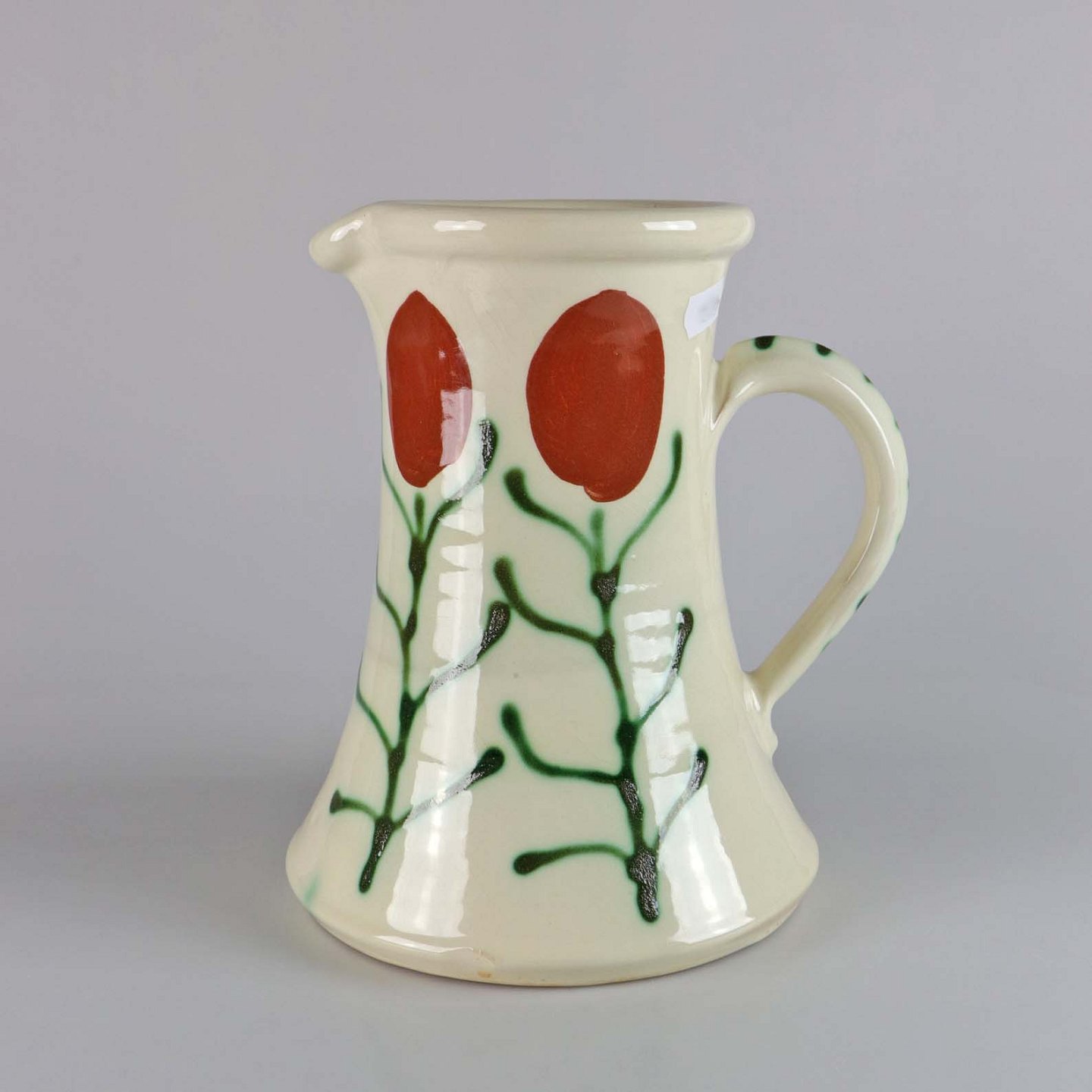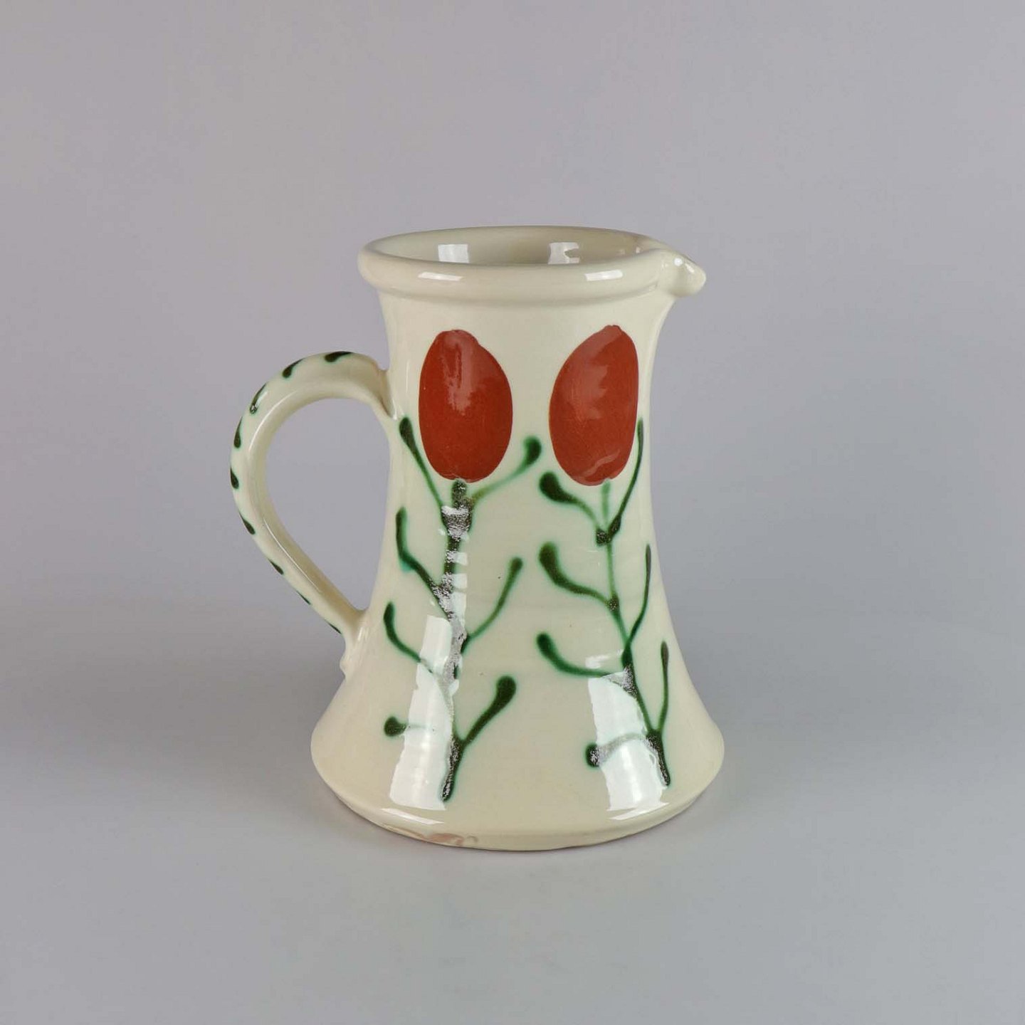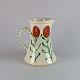 Glaseret kande i keramik i beige med motiv af store røde blomster med grønne stilke