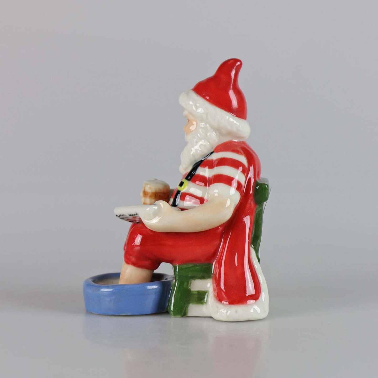 Årets Julemand i porcelæn År 2014. Julemanden med en kop chokolade og fødderne i vand.