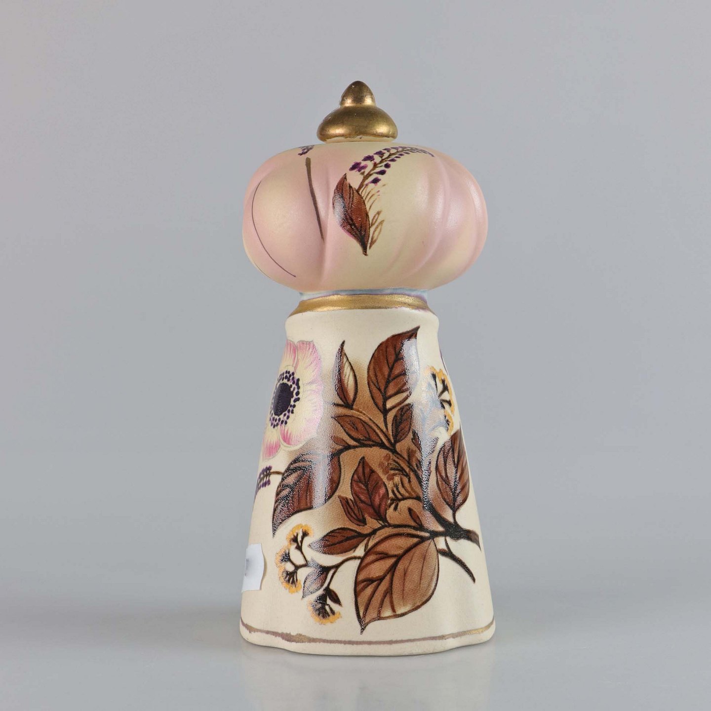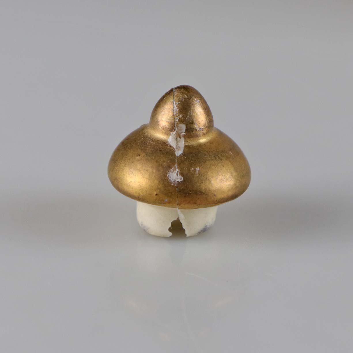 Figur i porcelæn. Melchior fra De tre vise mænd. Når guldknoppen tages af, er der hul til et kerte lys