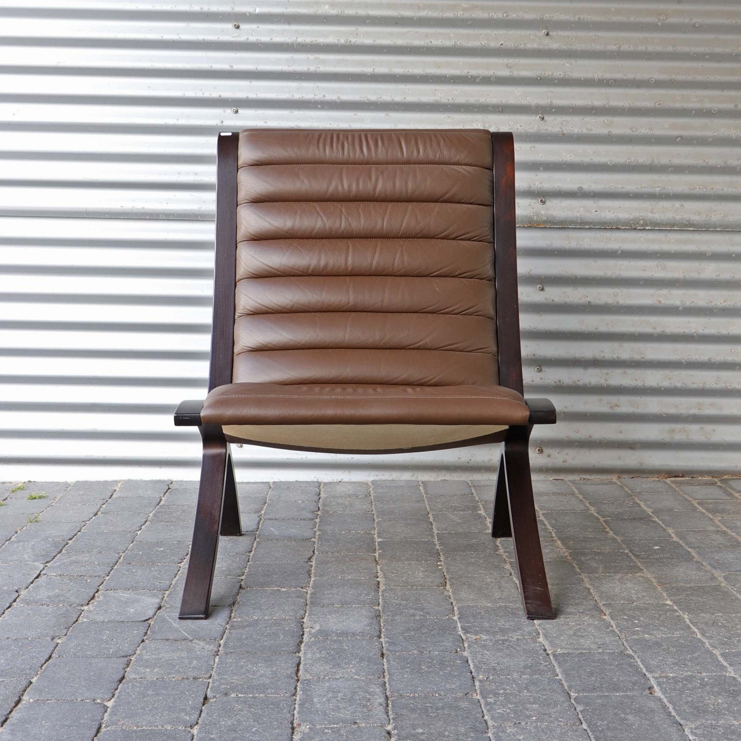 Dansk AX Highback lænestol fra 1980'erne. Sæde i brunt læder.