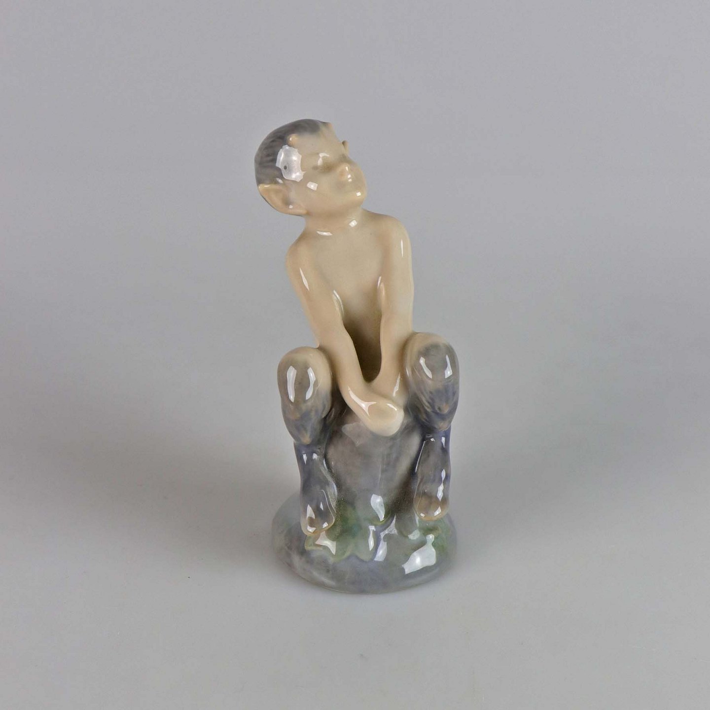 Porcelænsfigur med motiv af faun siddende på træstub no 1738