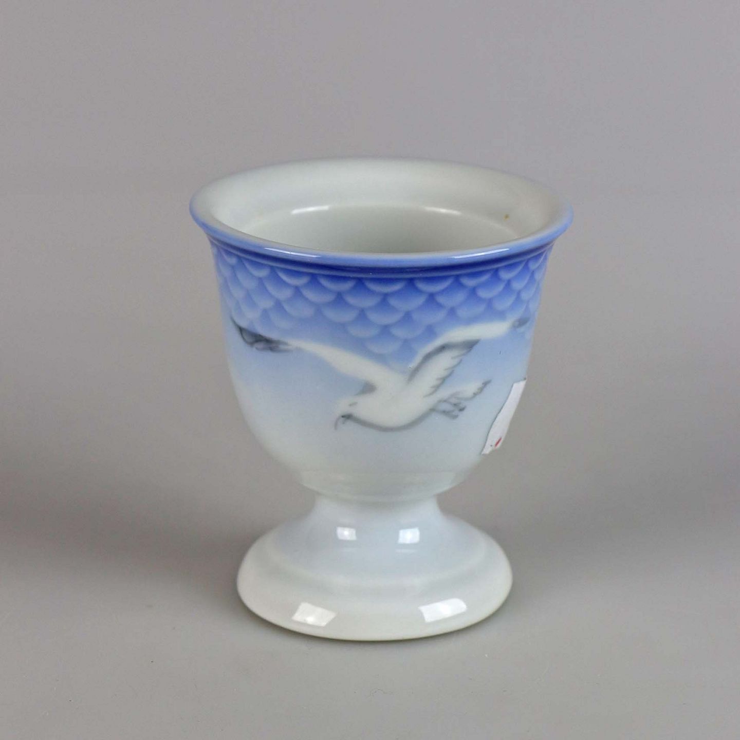 Æggebæger af porcelæn i blålige farver med motiv af måger