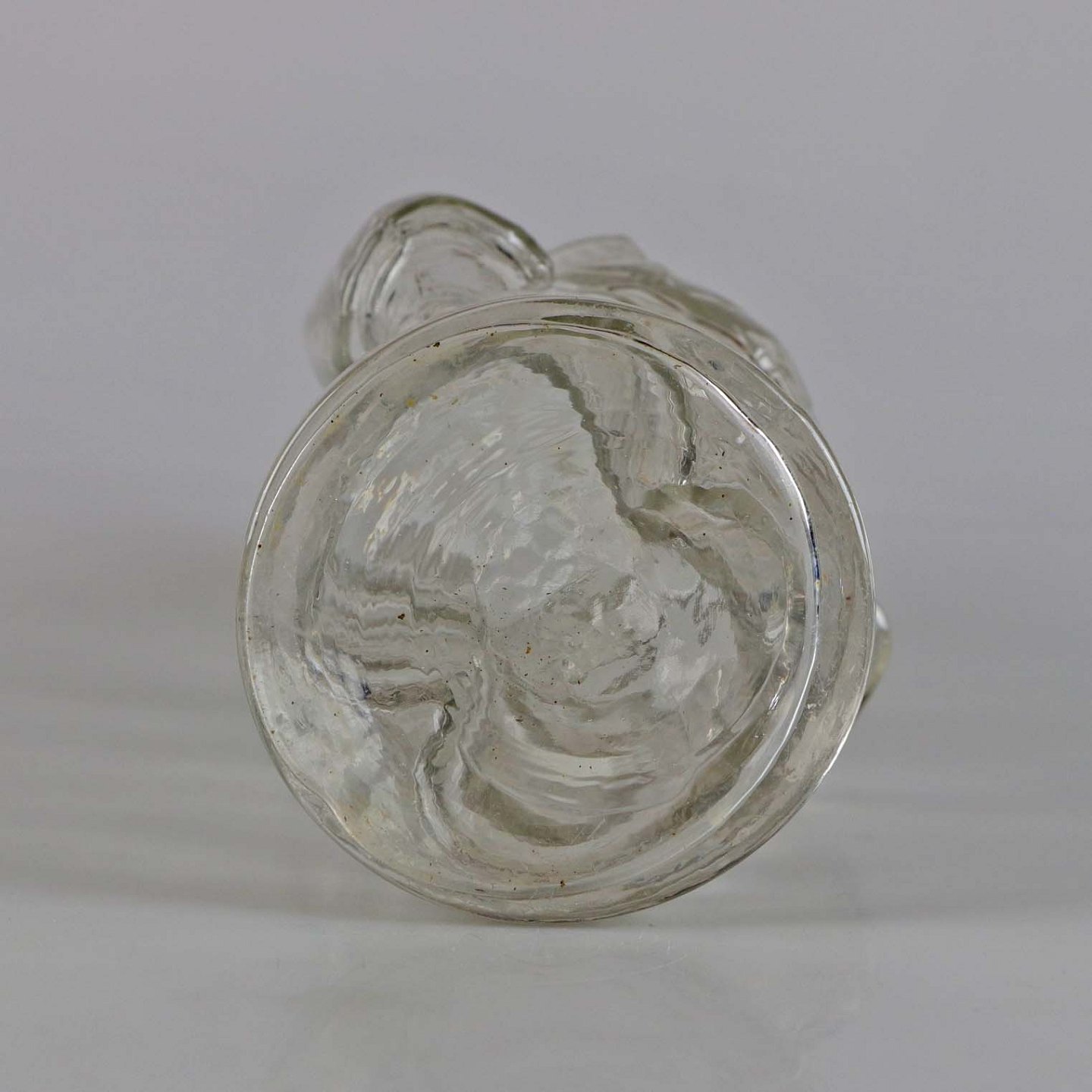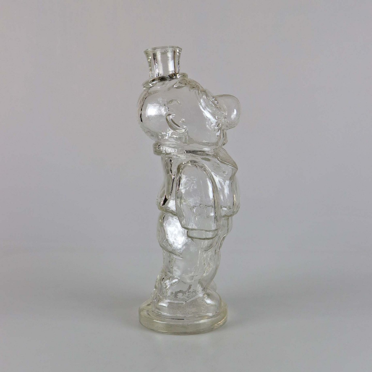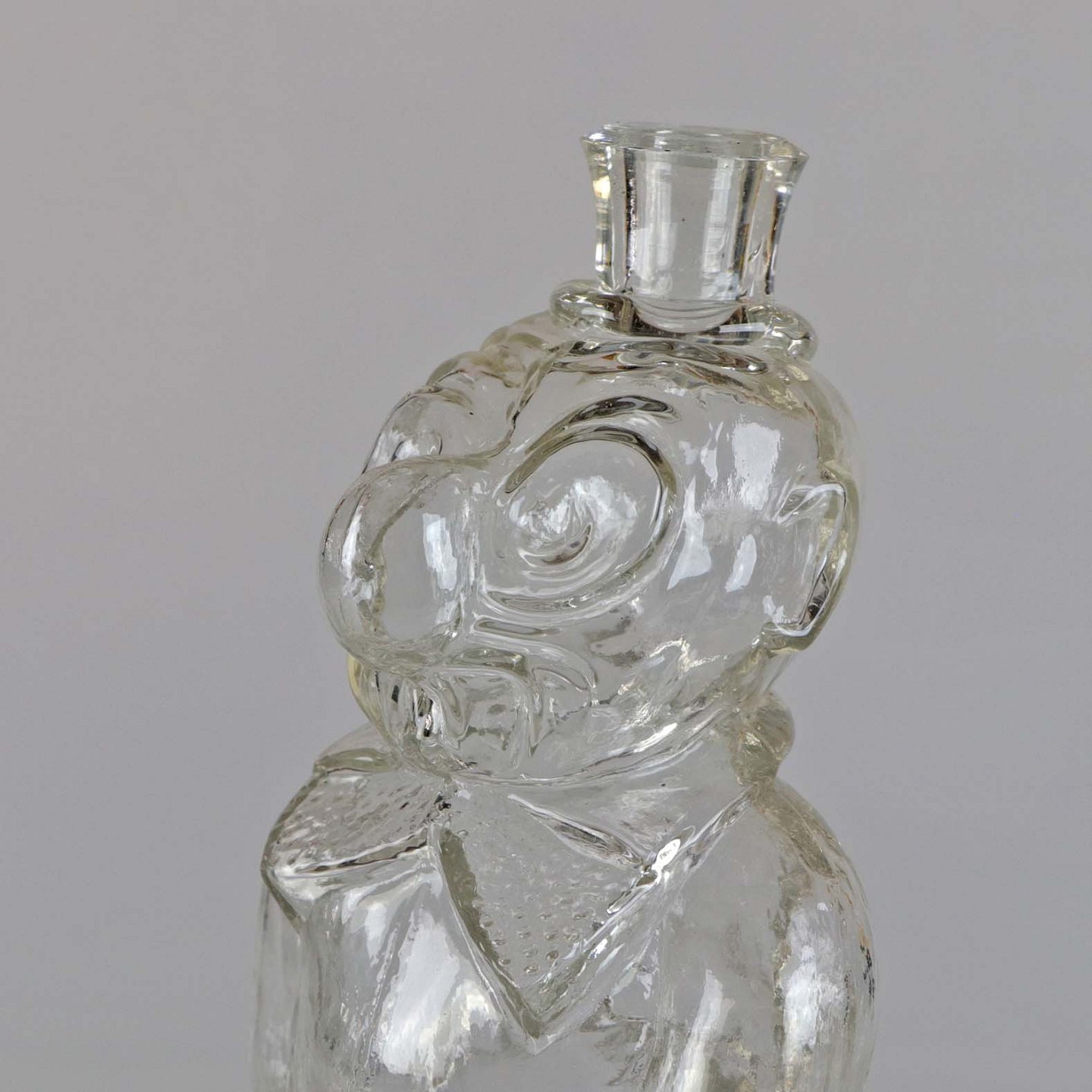 Meget sjælden mundblæst figurflaske af glas, formet som Storm Petersen figuren "Peter" med lille hals og munding til korkprop.