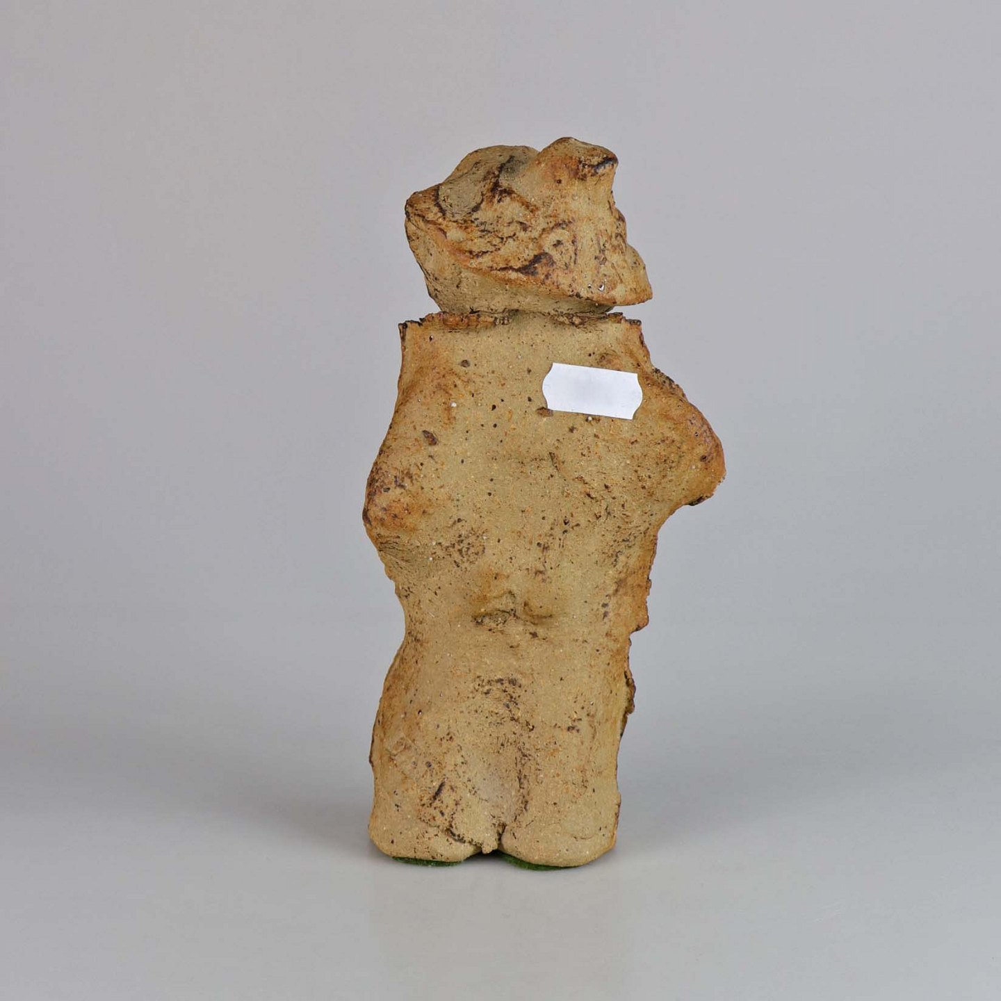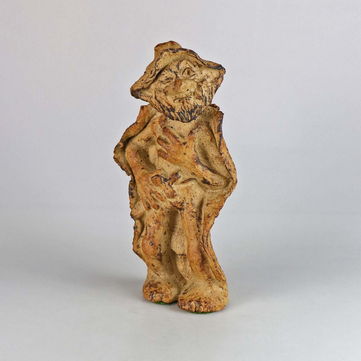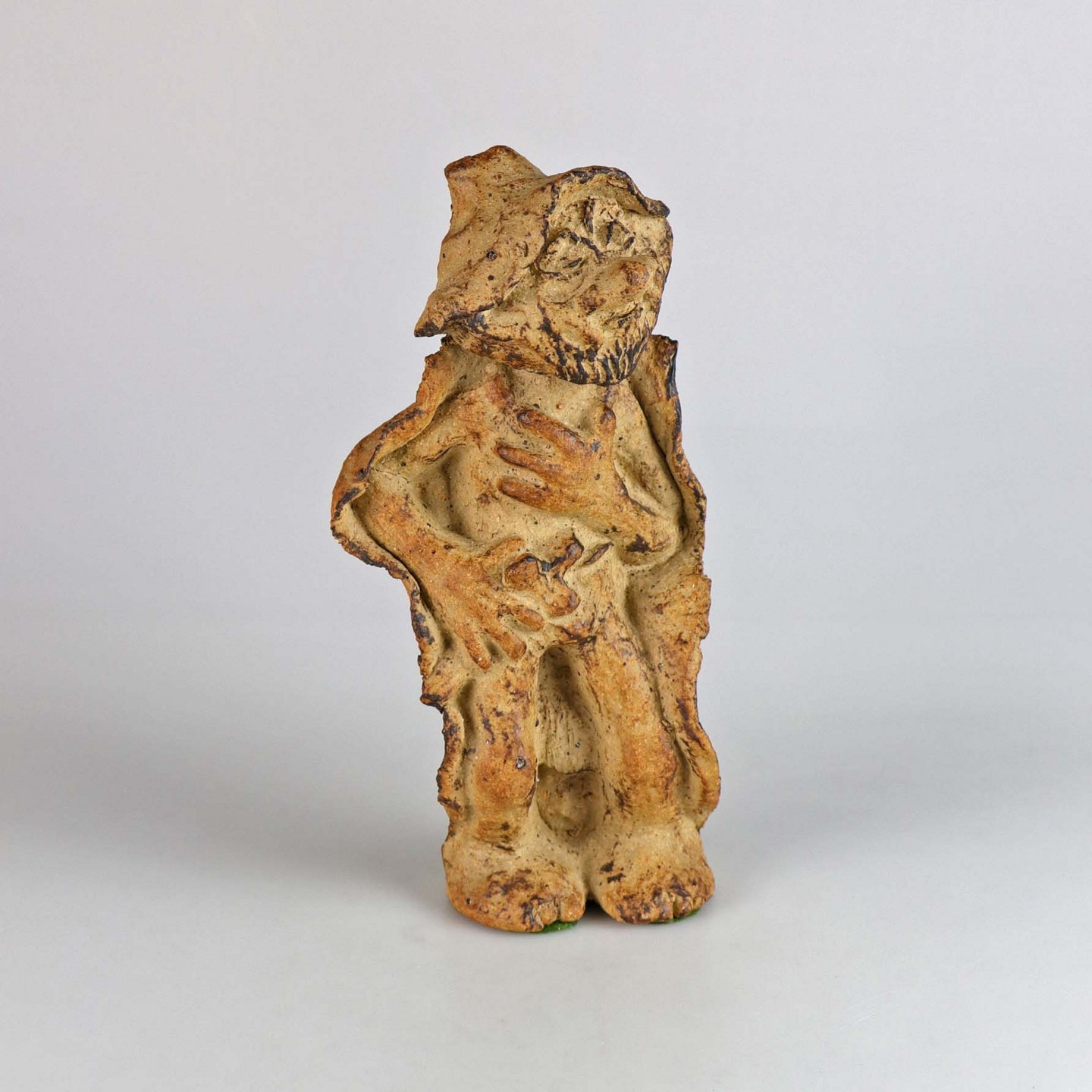 Figur af keramik der forestiller en mand med dolk og lang kappe