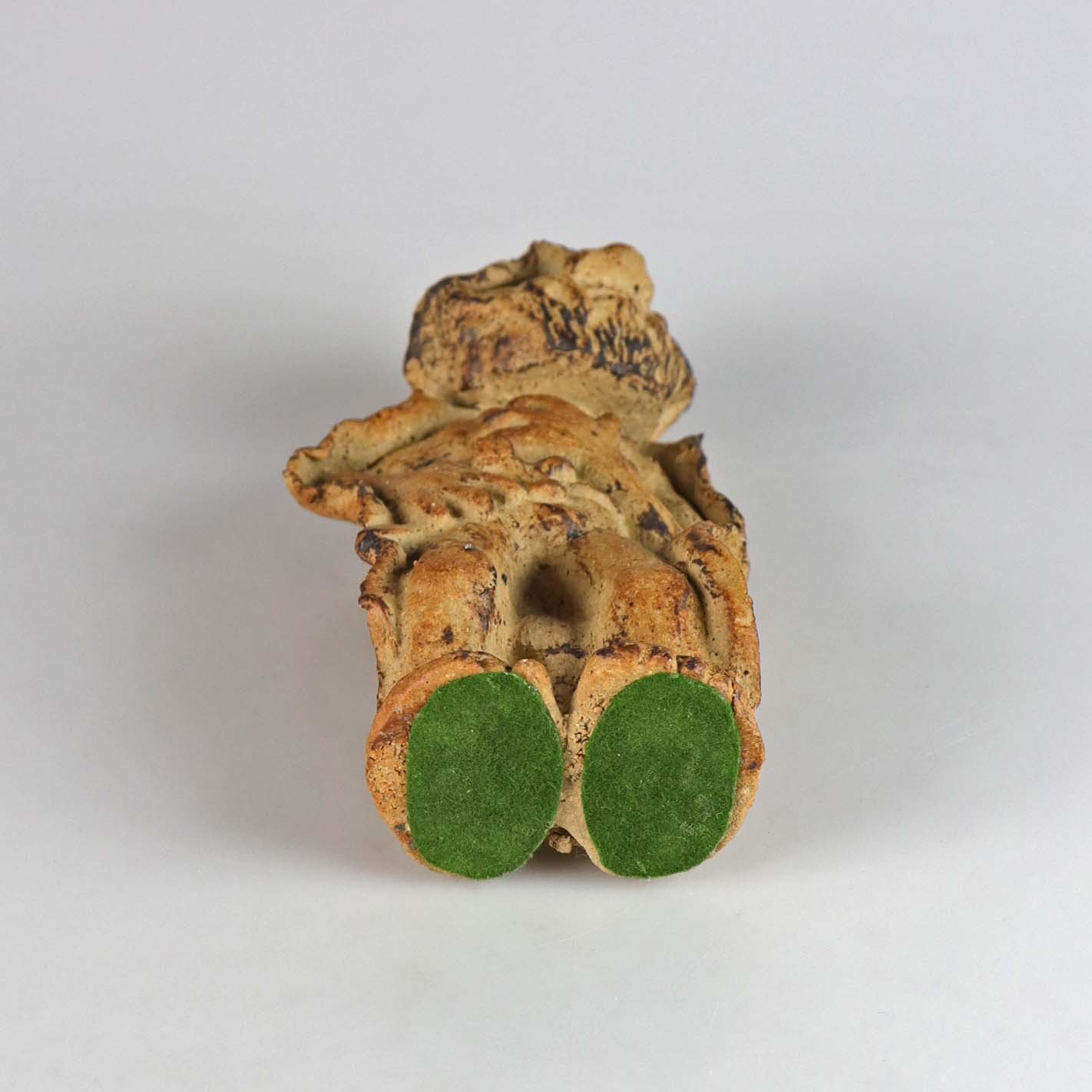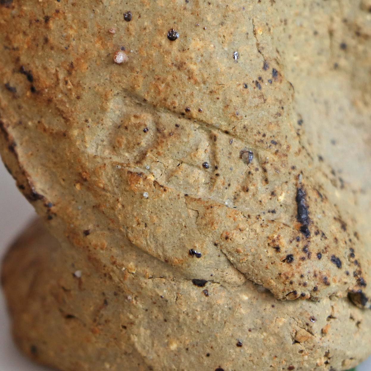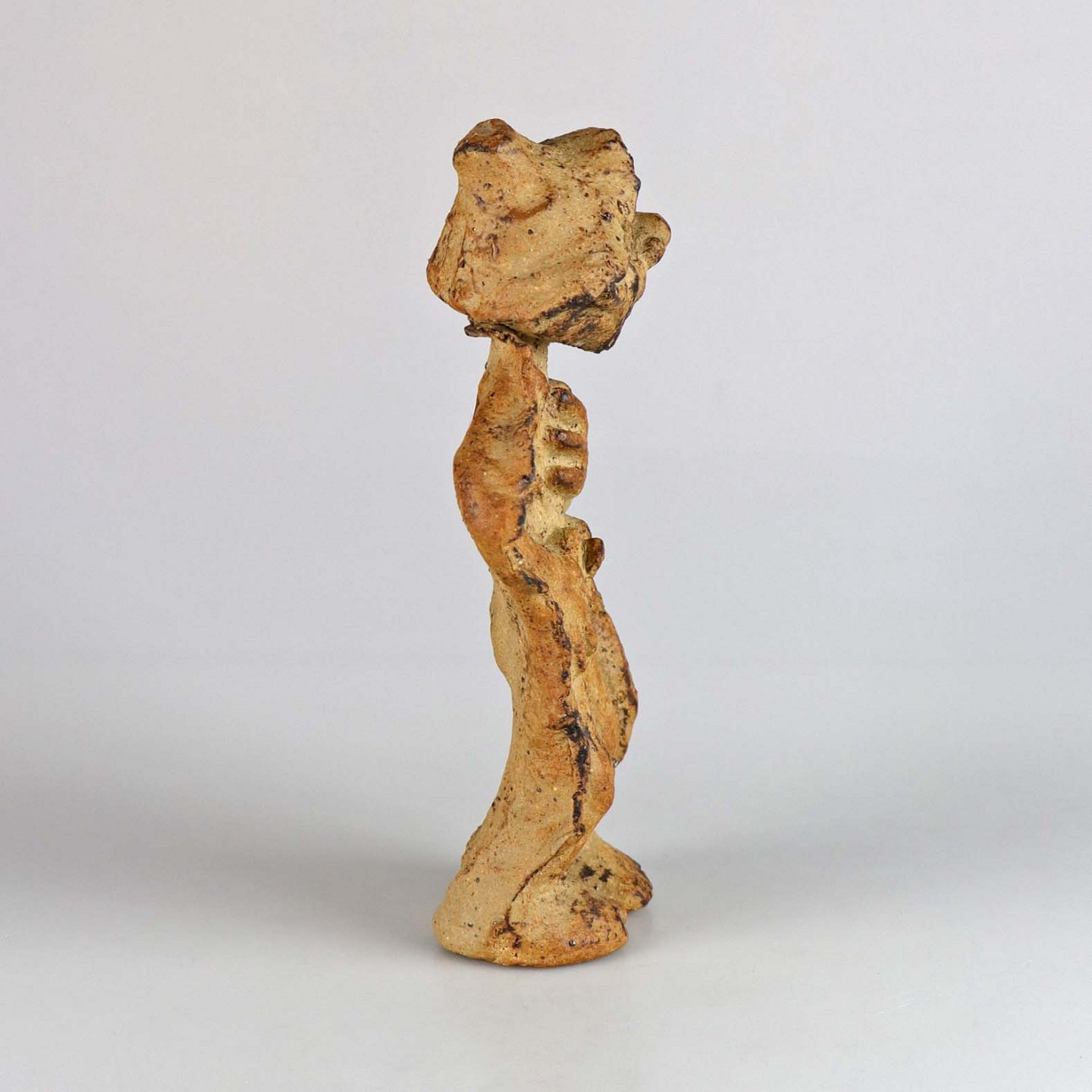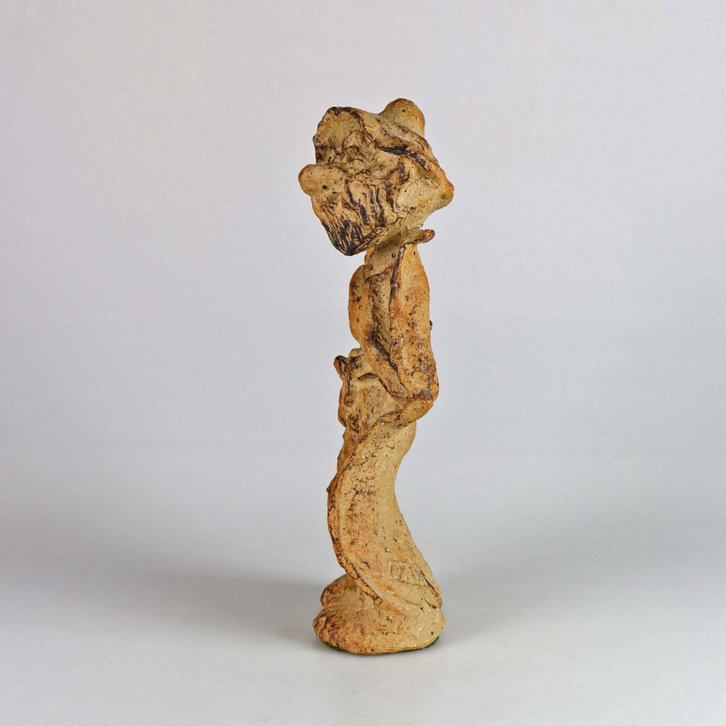 Figur af keramik der forestiller en mand med dolk og lang kappe