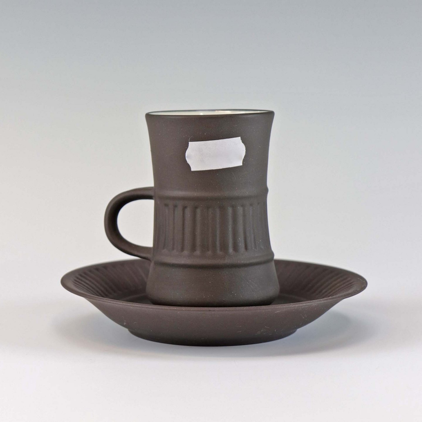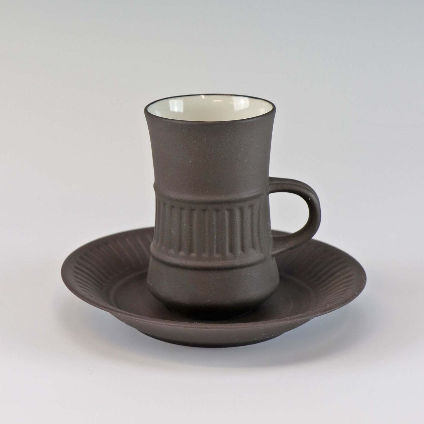 Kop med underkop i stentøj fra stellet Flamestone