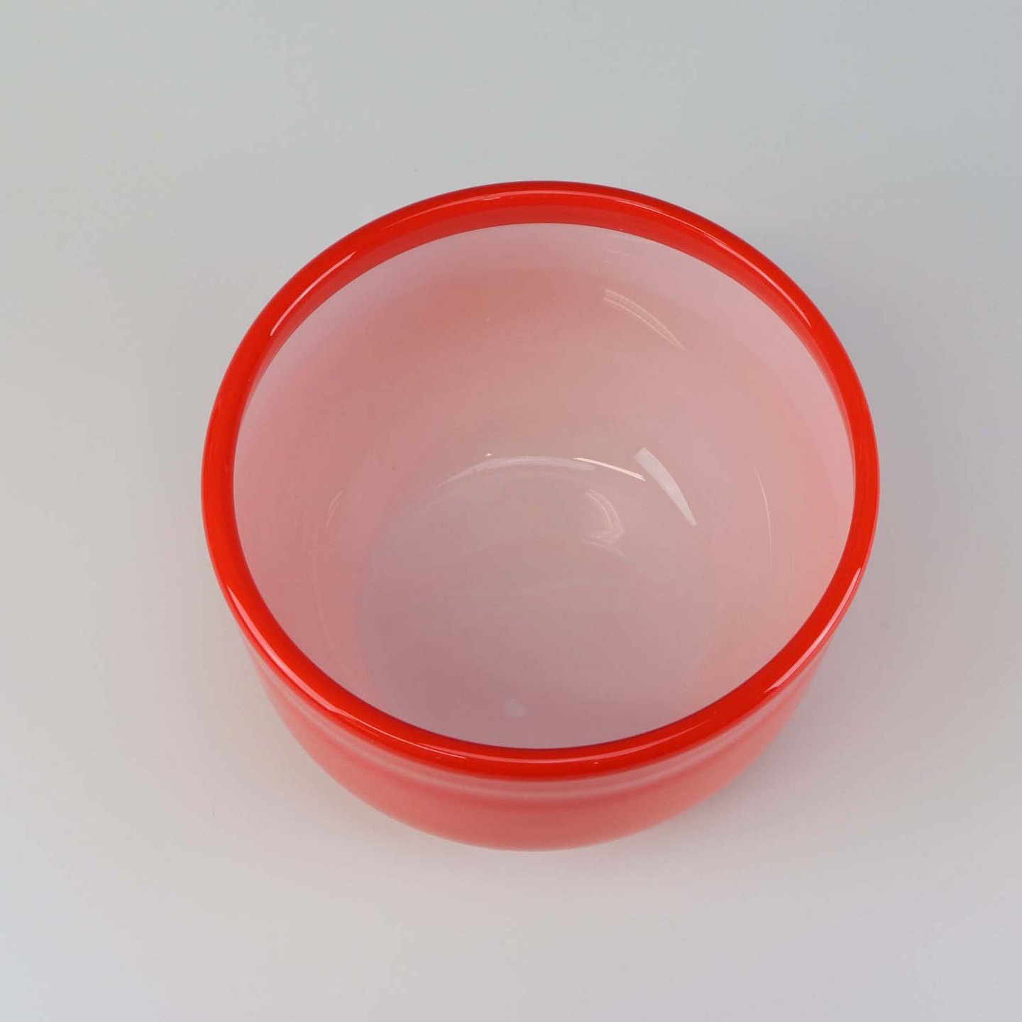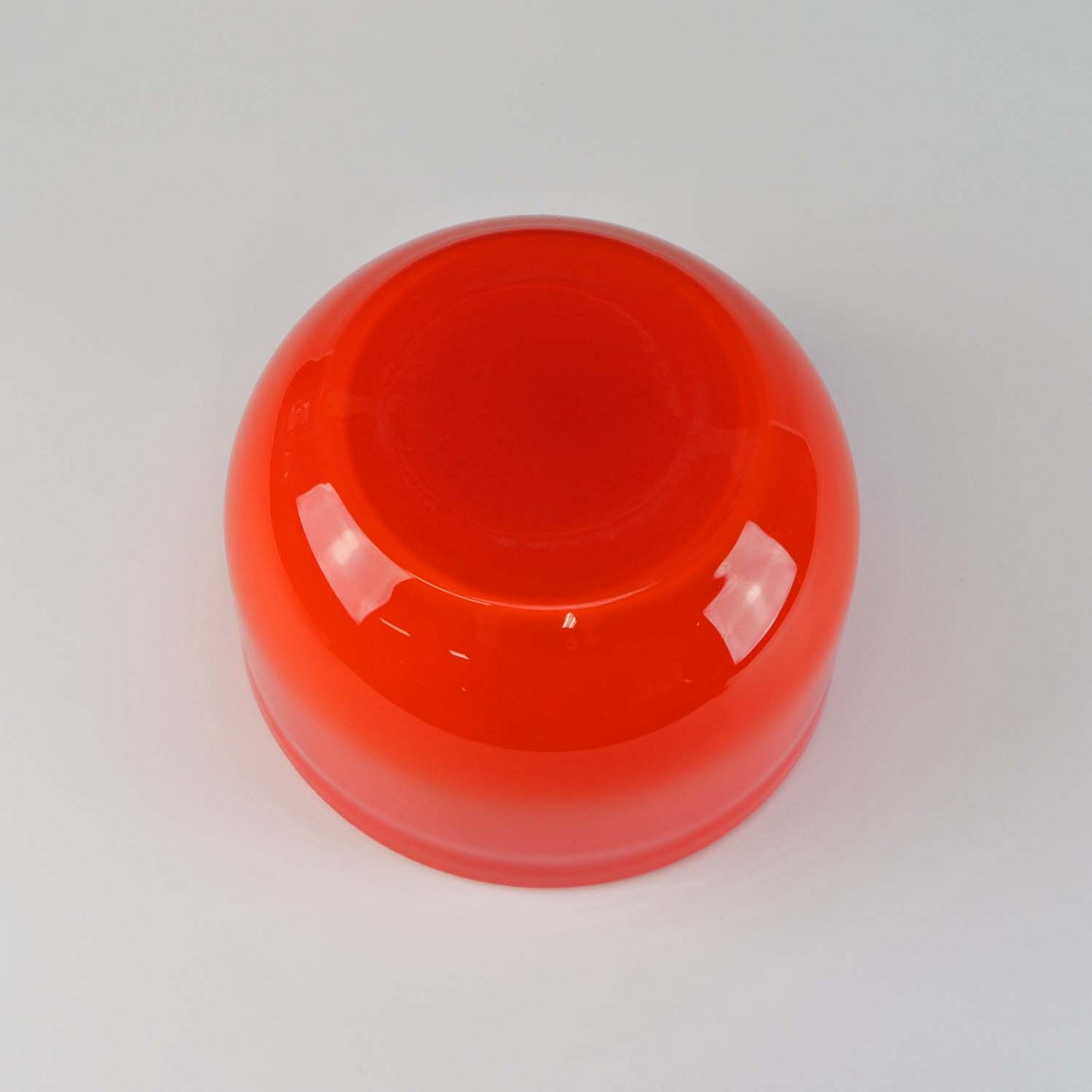 Skål af orangerød mundblæst glas fra serien Palet