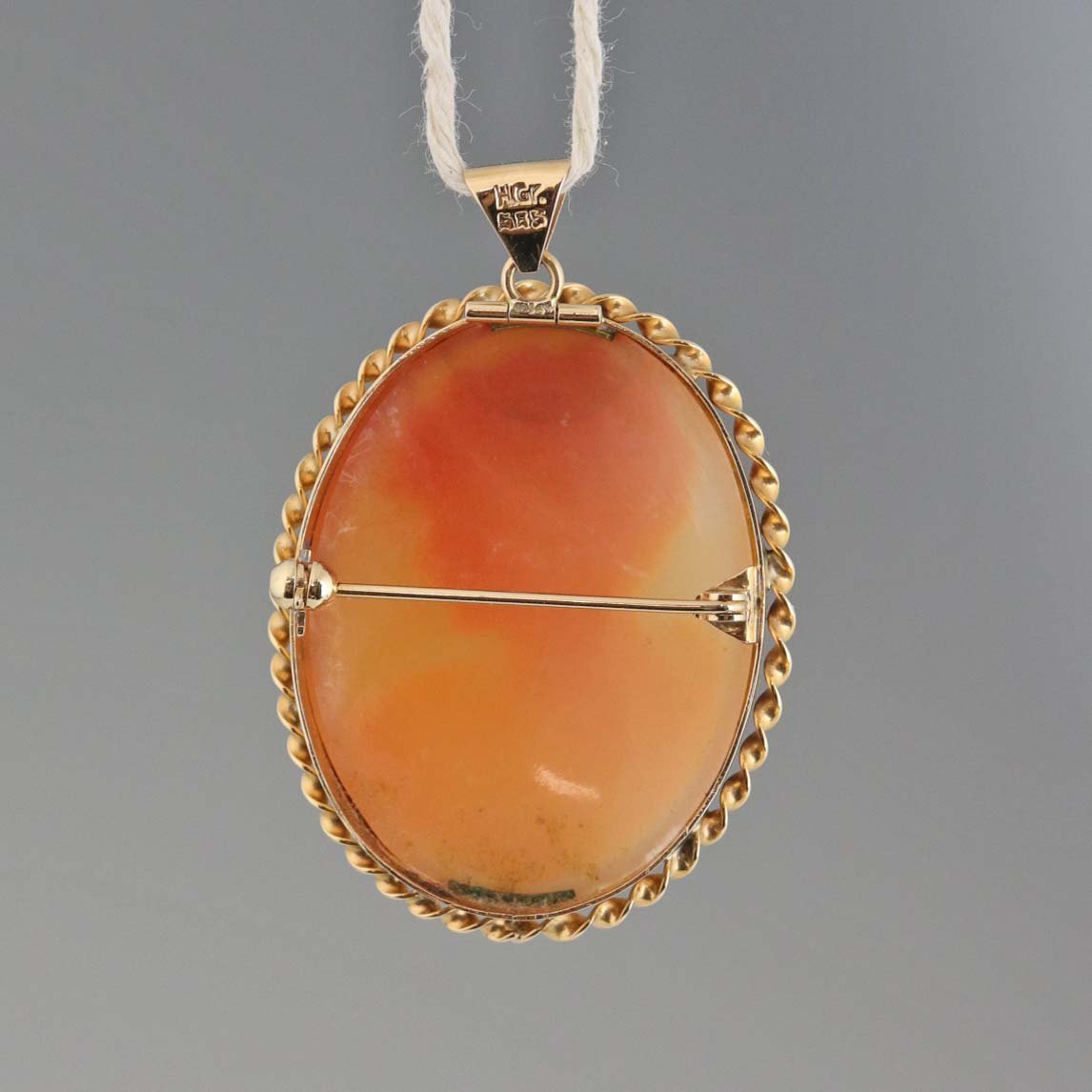 Kamé vedhæng og broche i ét med snoet ring af 14 karat guld