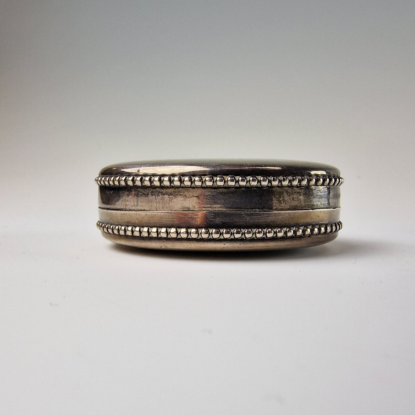 Oval pilleæske af sølv med inskriptionen Betty Wagle