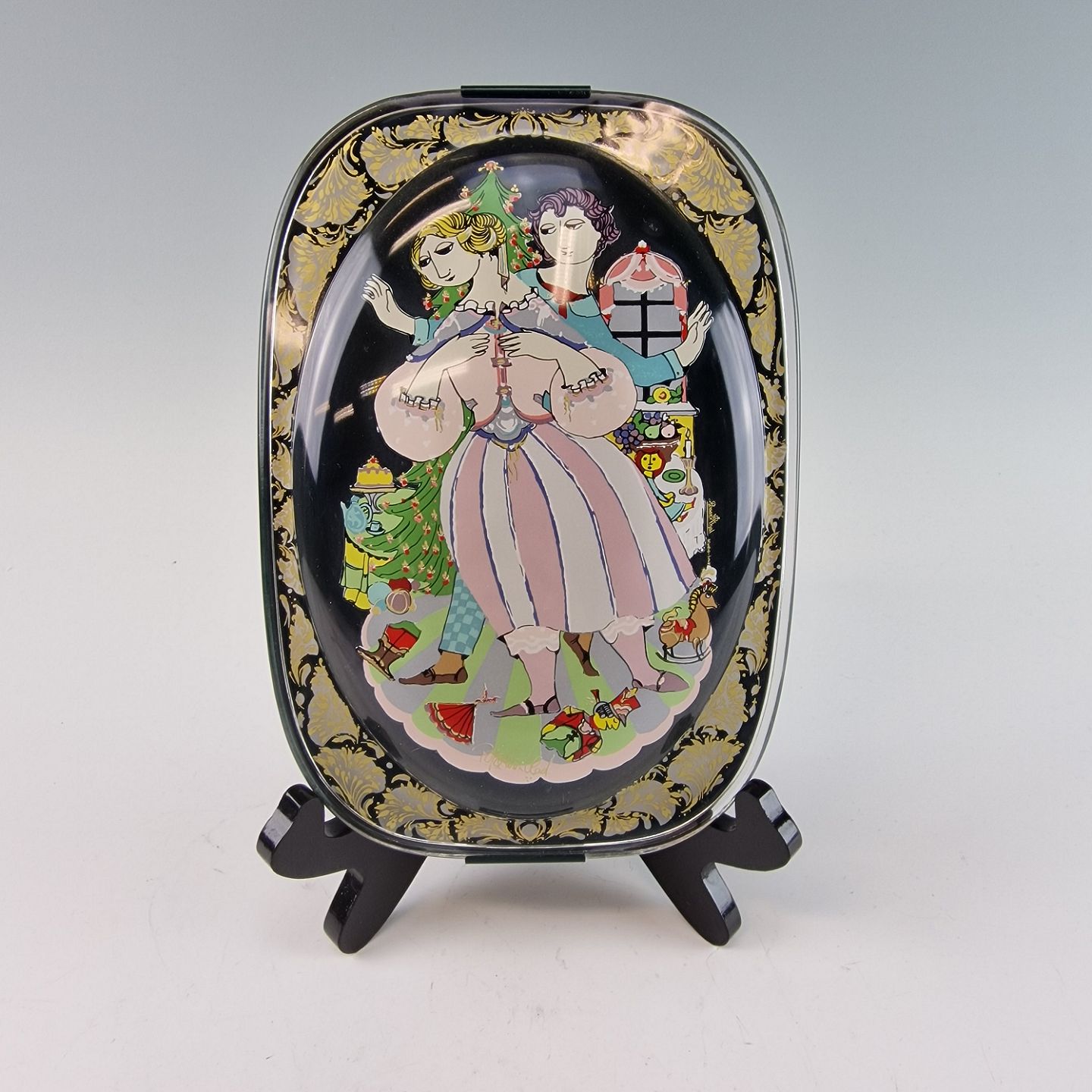 Sjælden glasplatte-serie lagt i farver under beskyttende metalbaggrund. Forestiller eventyret "Nøddeknækkeren" hvor Fritz forsøger at få Claras nøddeknækker
