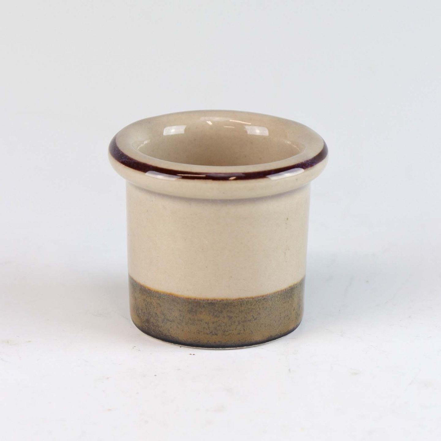 Stellet Peru er af stentøj, glaseret med lys grå farve og dekoreret med bånd af grøn/brunlige farve