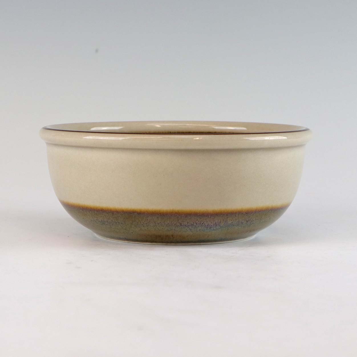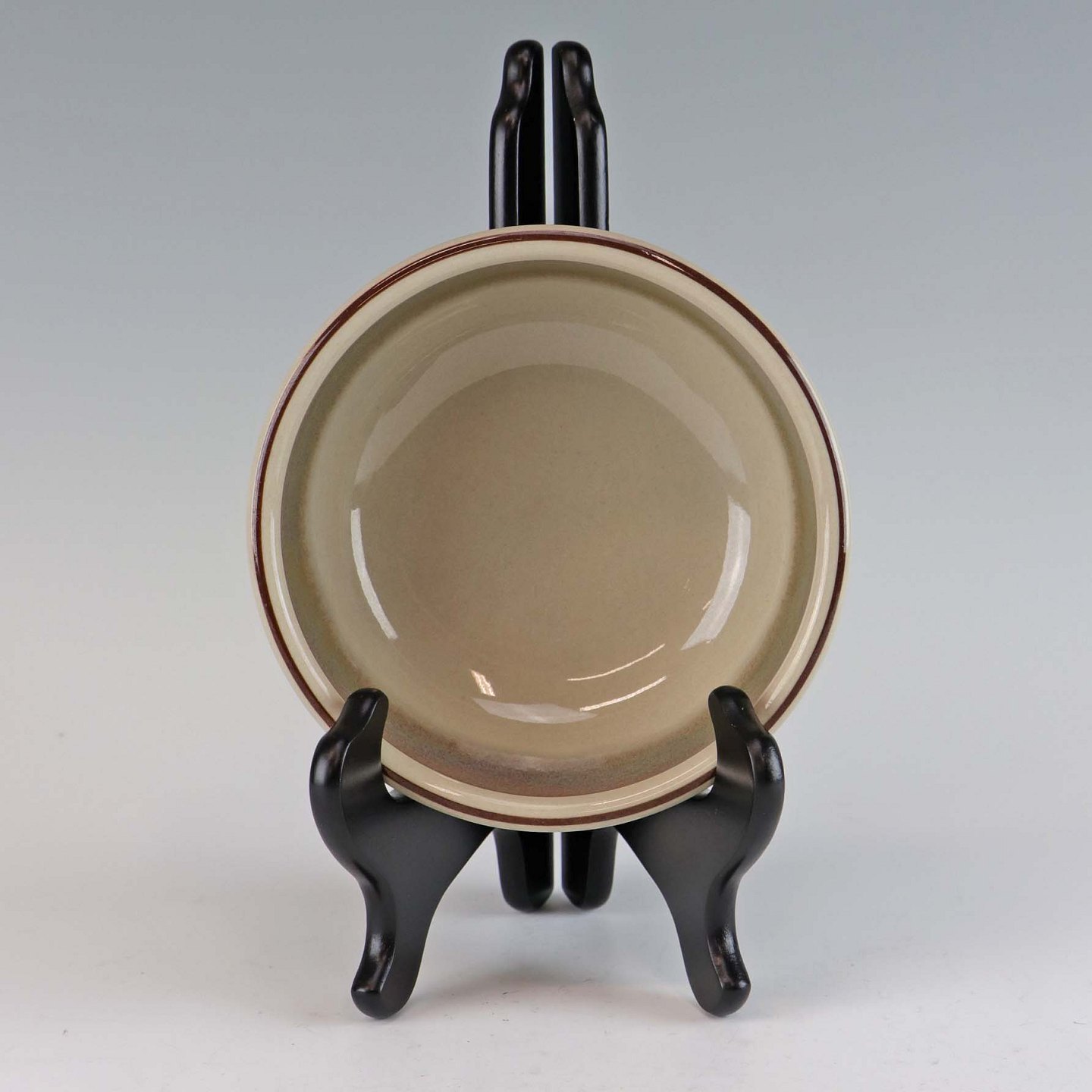 Stellet Peru er af stentøj, glaseret med lys grå farve og dekoreret med bånd af grøn/brunlige farve