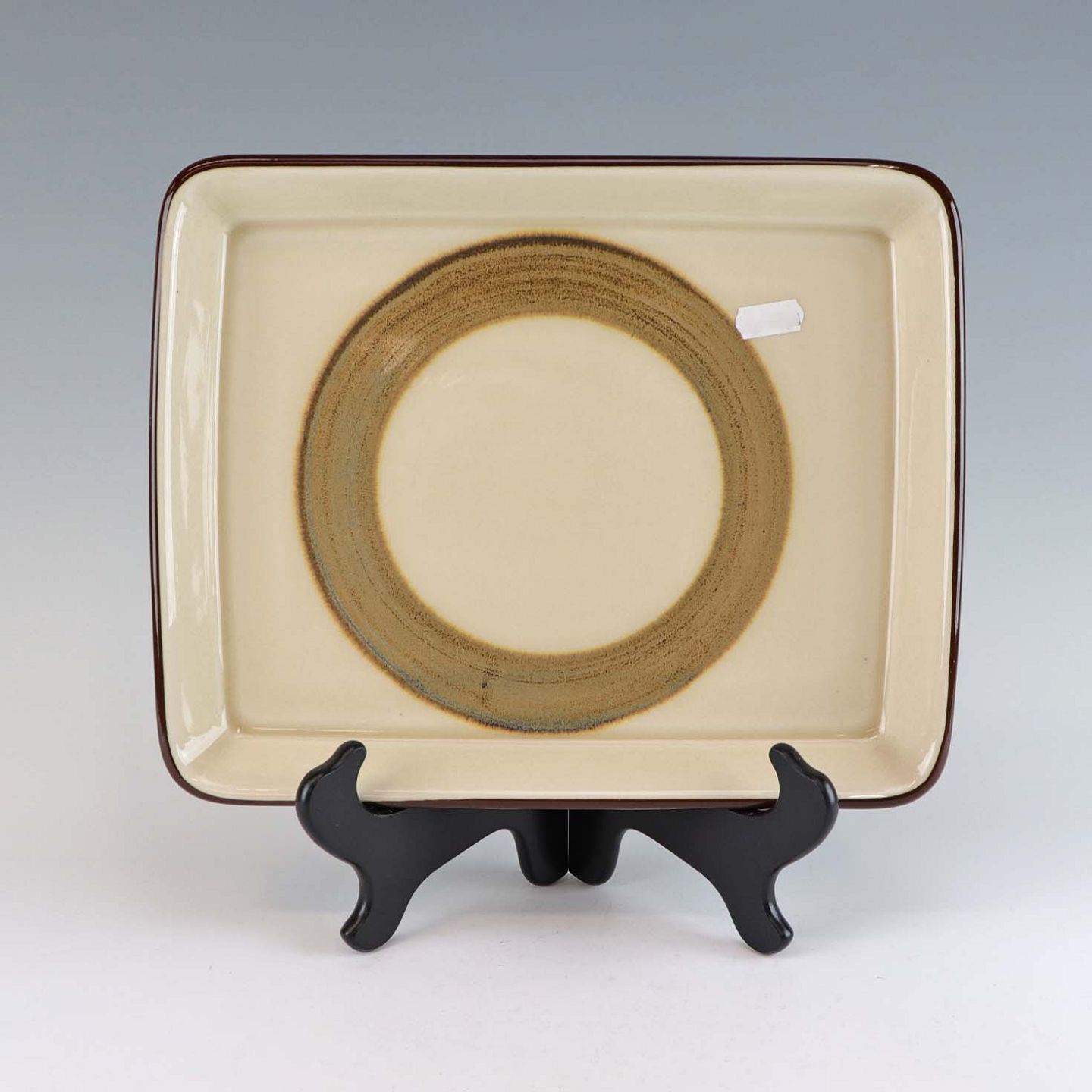Stellet Peru er af stentøj, glaseret med lys grå farve og dekoreret med bånd af grøn/brunlige farve