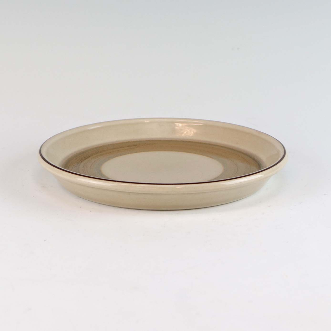 Stellet Peru er af stentøj, glaseret med lys grå farve og dekoreret med bånd af grøn/brunlige farve