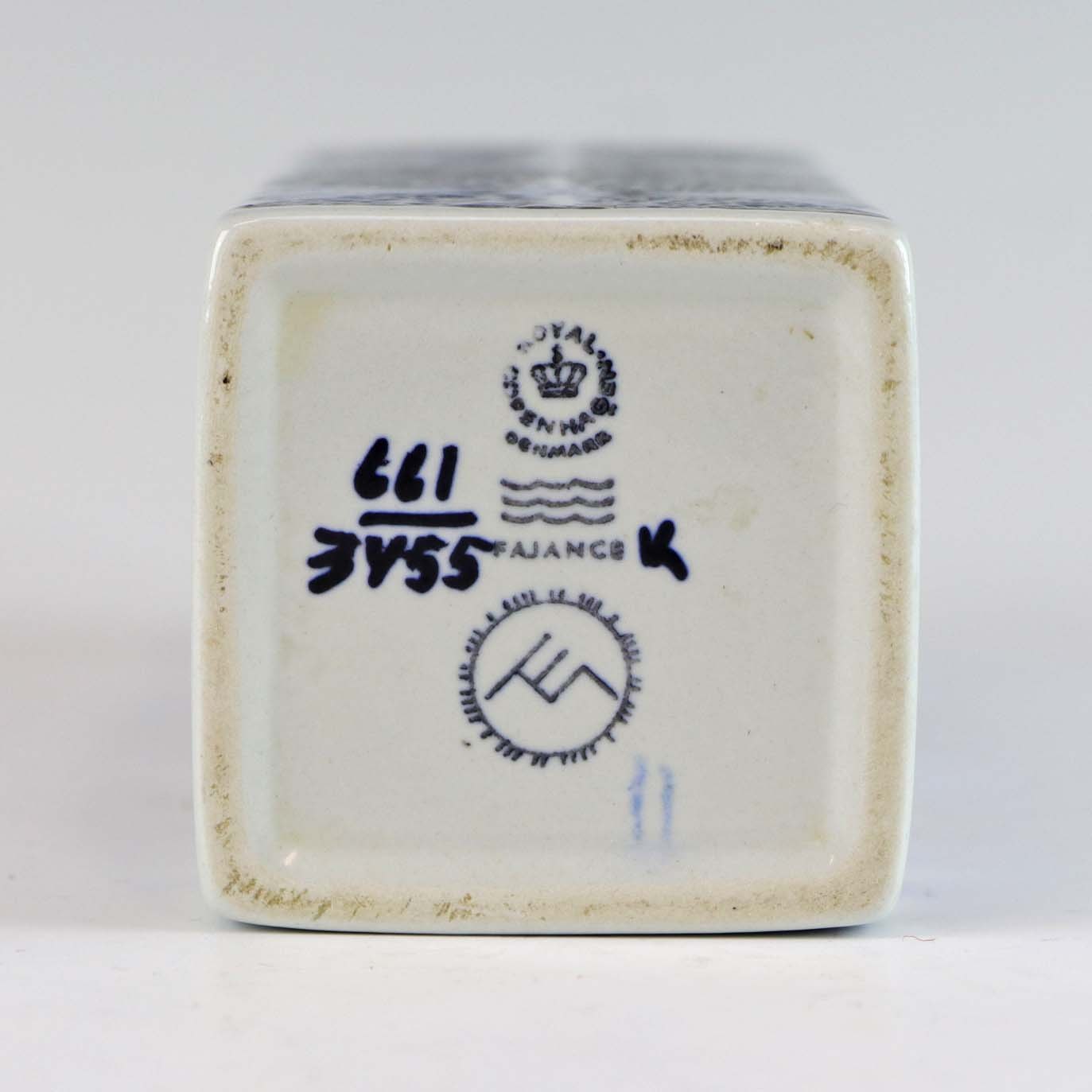 Fajance vase Baca no 661/3455. Kvadratisk med mønster i blå og sorte farver