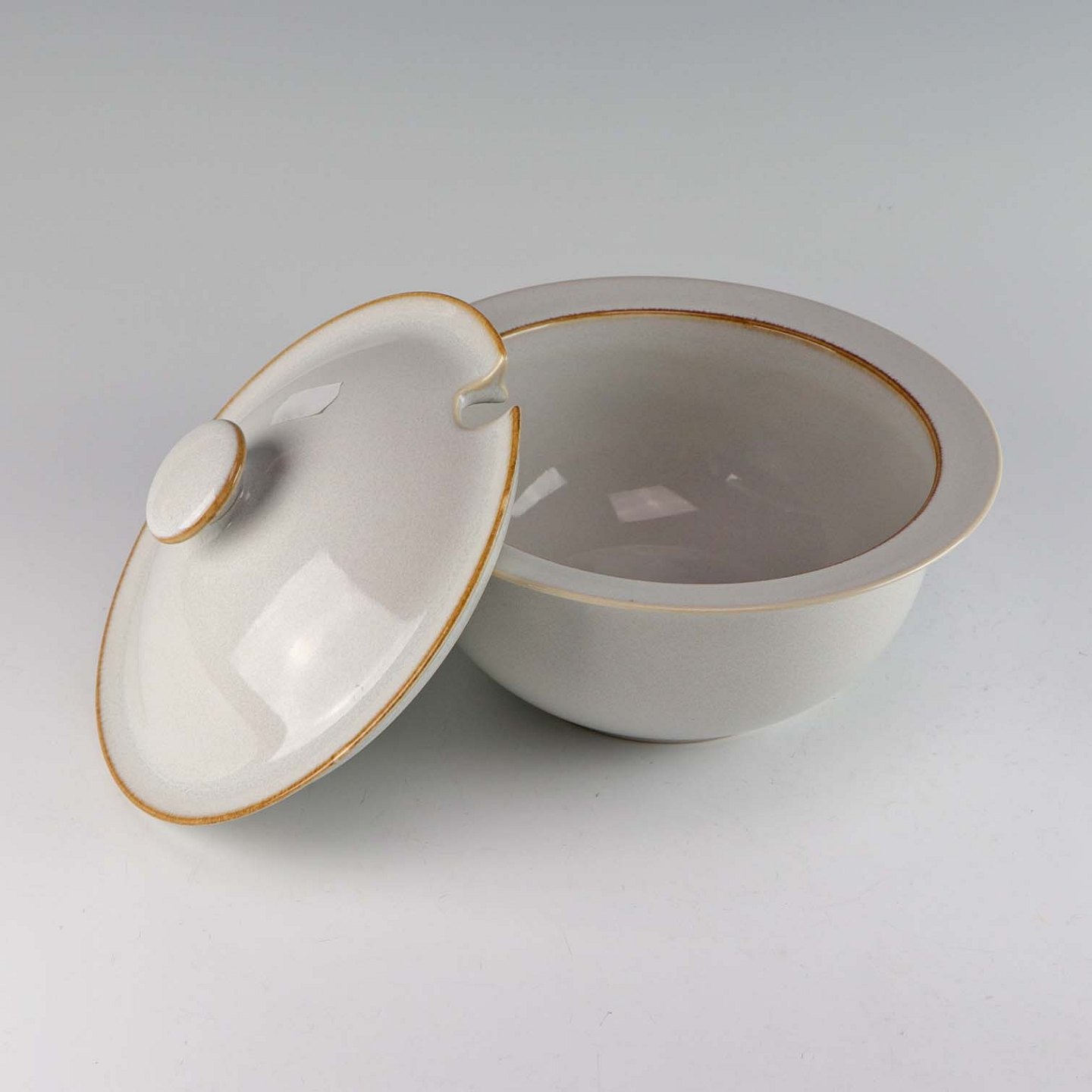 Stellet Coppelia er glaseret hvidt stentøj, dekoreret med kanter af lys brun farve
