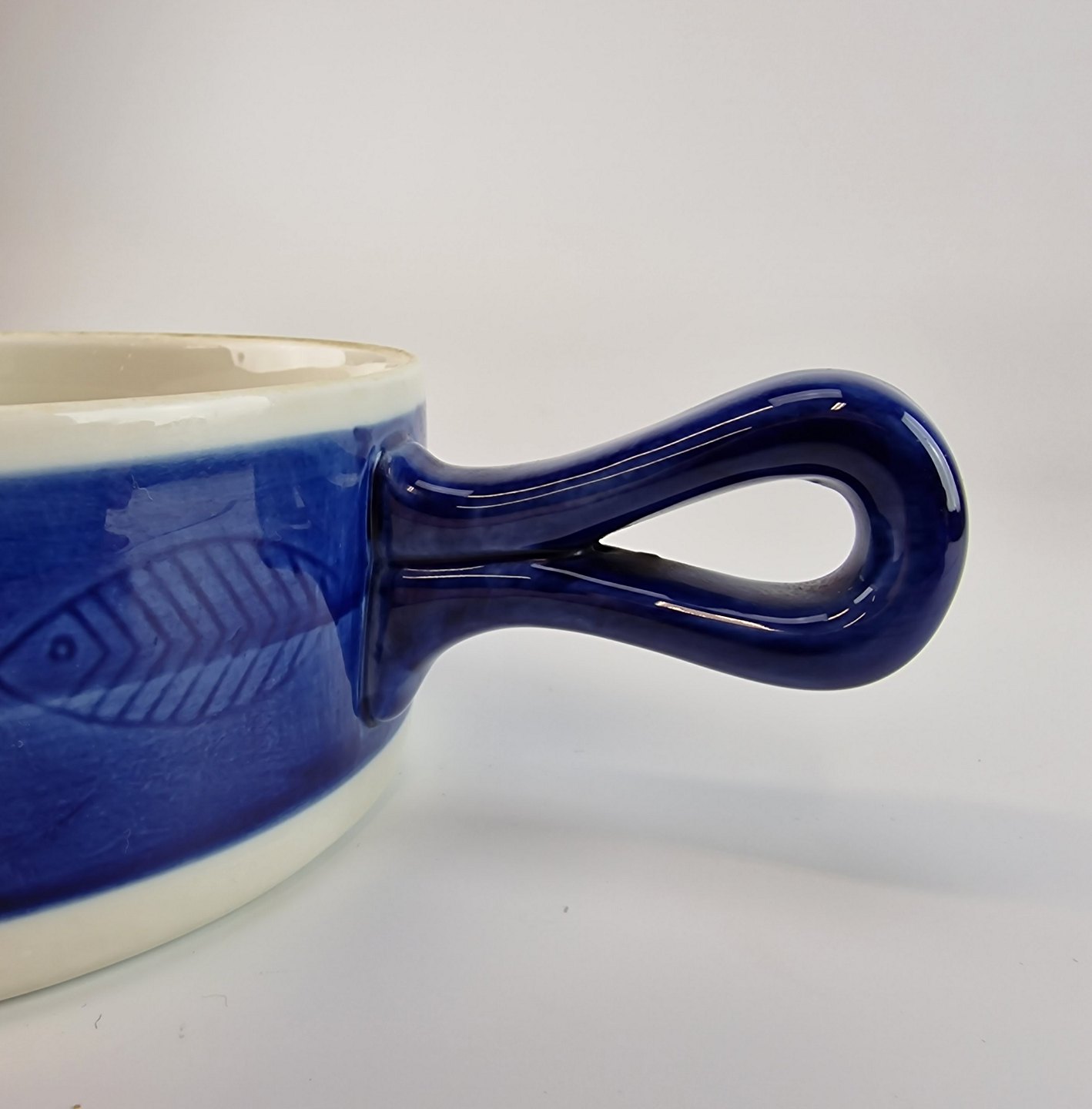 Blå Koka er af hvidt glaseret porcelæn med et bånd af mørk blå