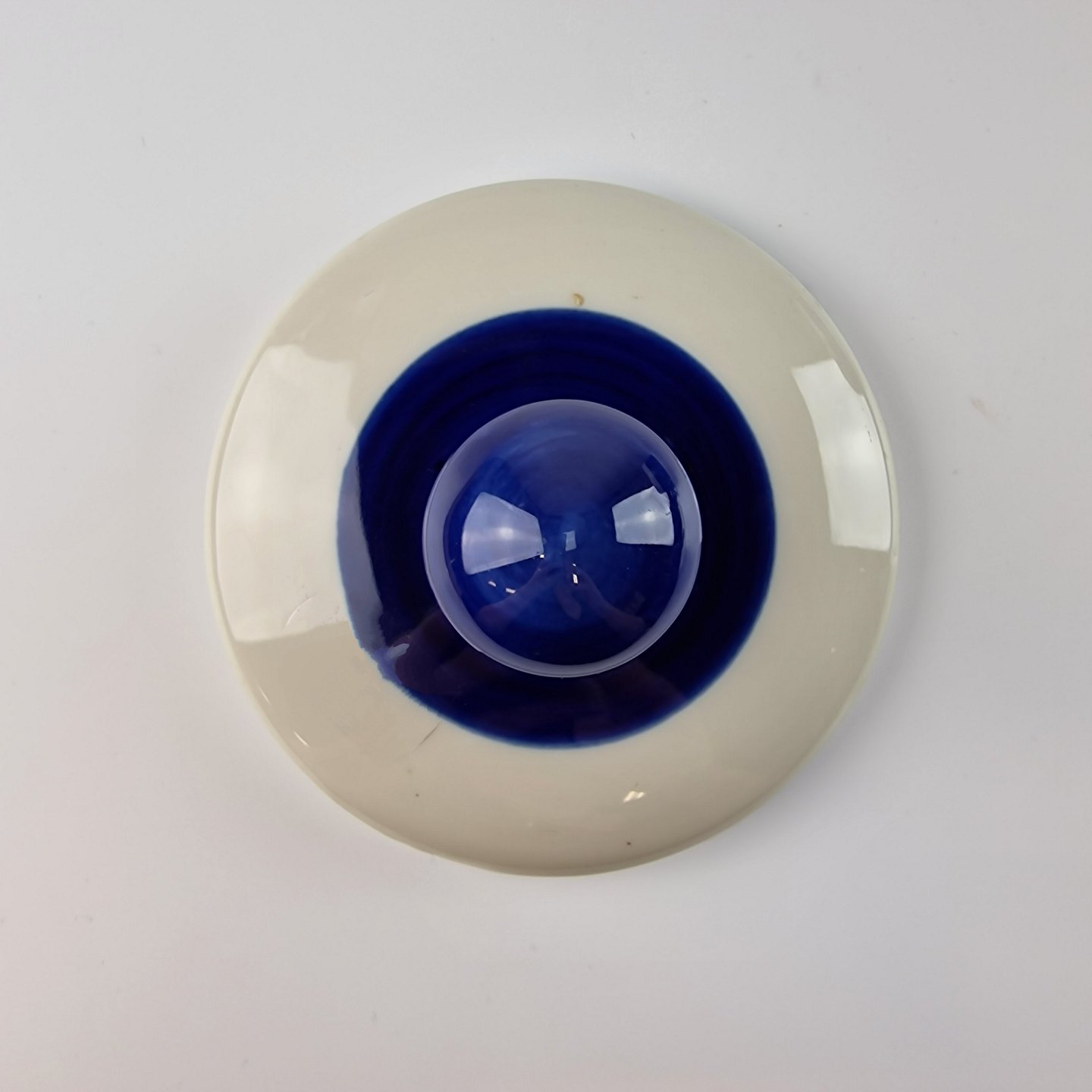 Blå Koka er af hvidt glaseret porcelæn med et bånd af mørk blå