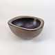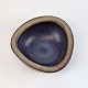 Trekantet keramikskål, brunmeleret udvendigt og blå indvendigt