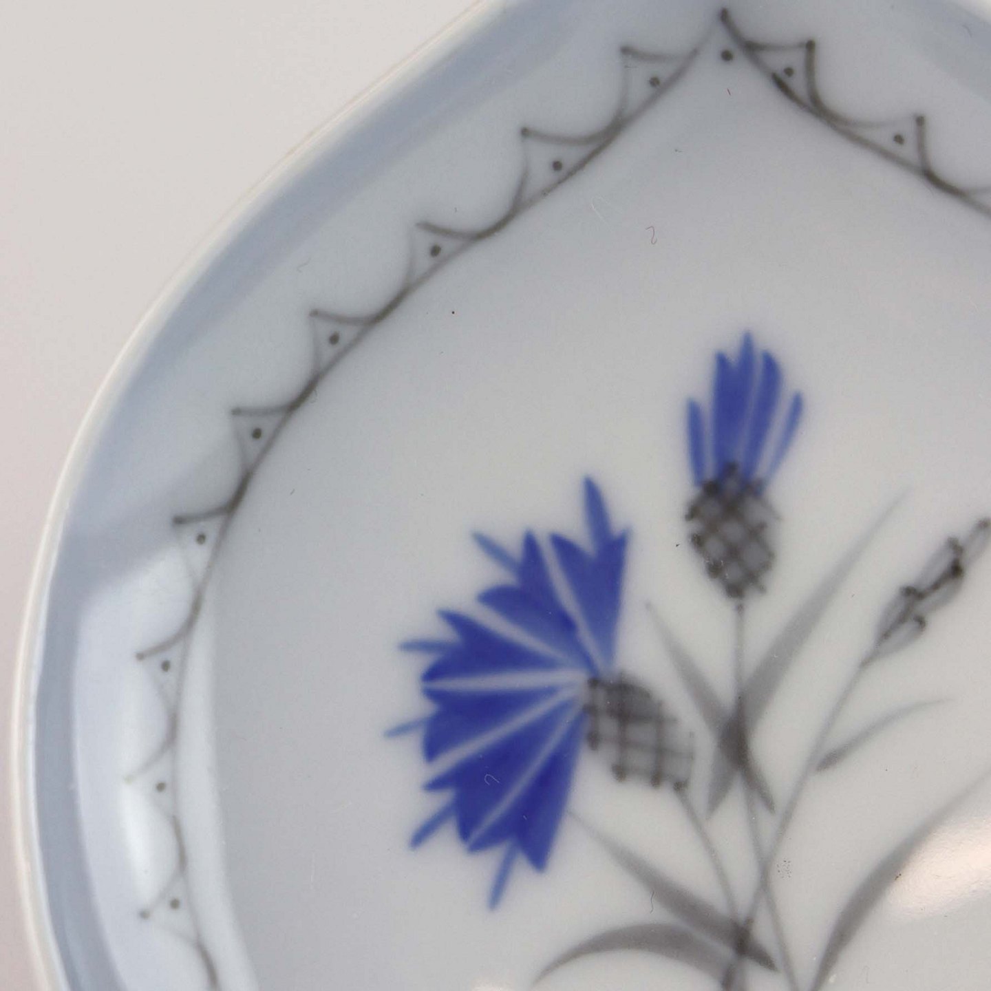 Demeter er af hvidt porcelæn med graduering af blå i kanten og med motiv af kornblomst