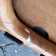 Taburet af ege træ og original patineret læder. Kan klappes sammen