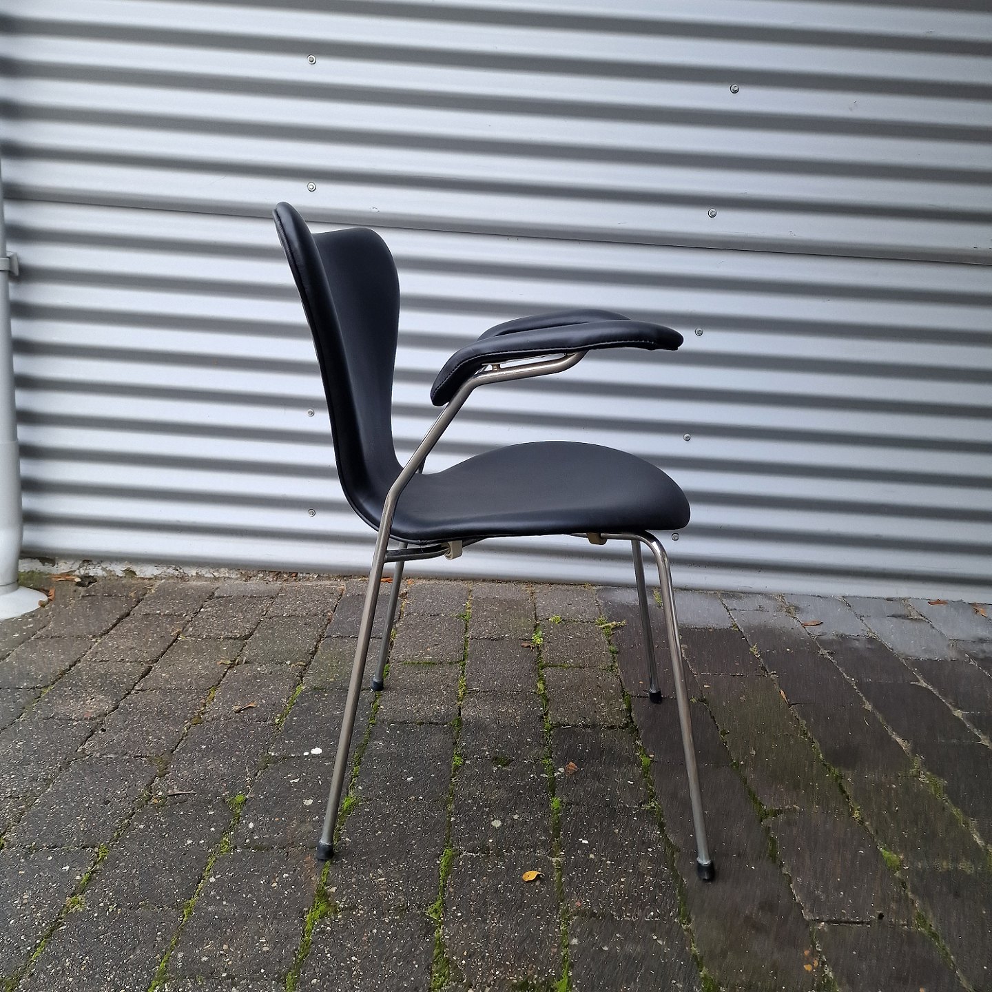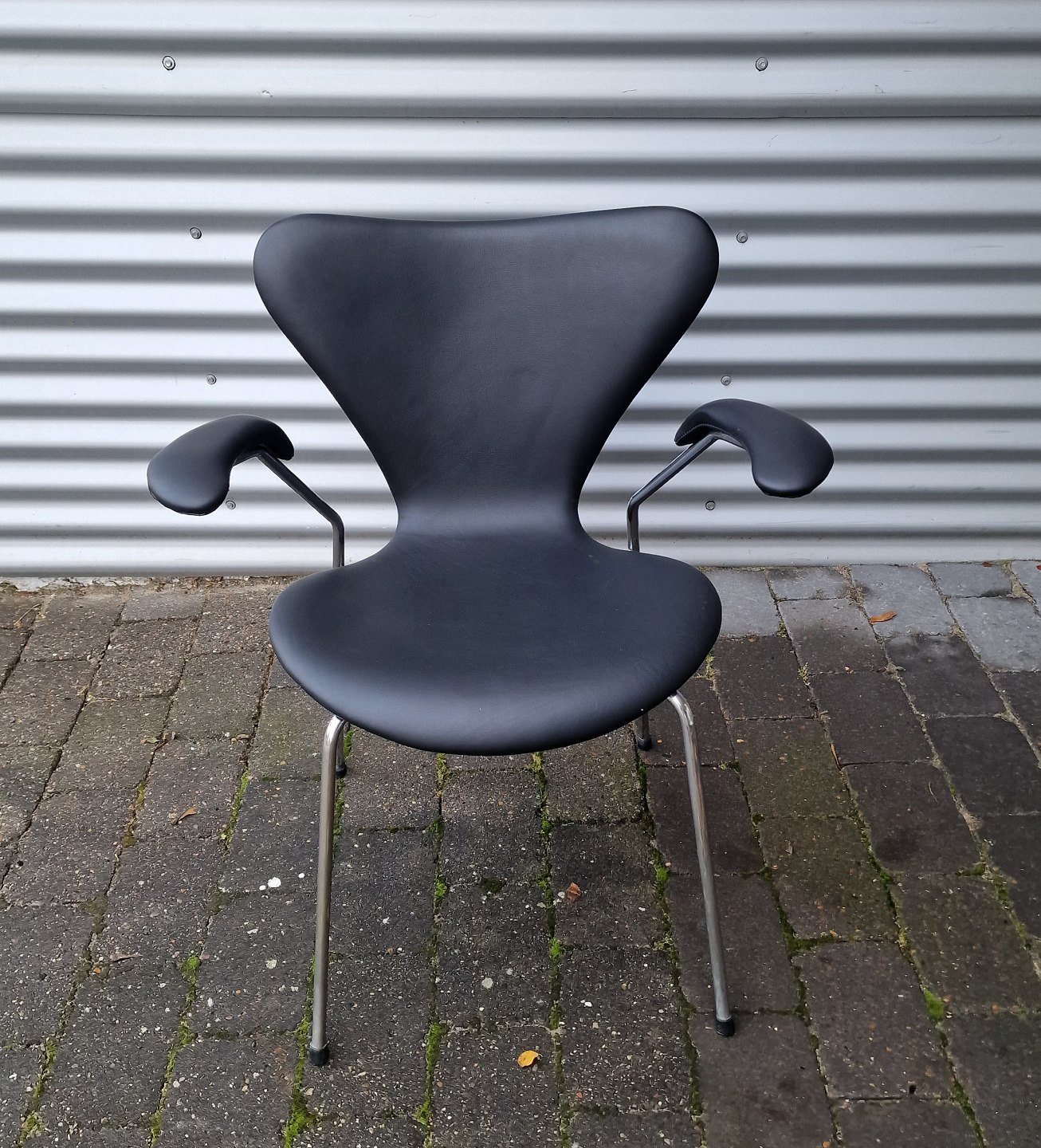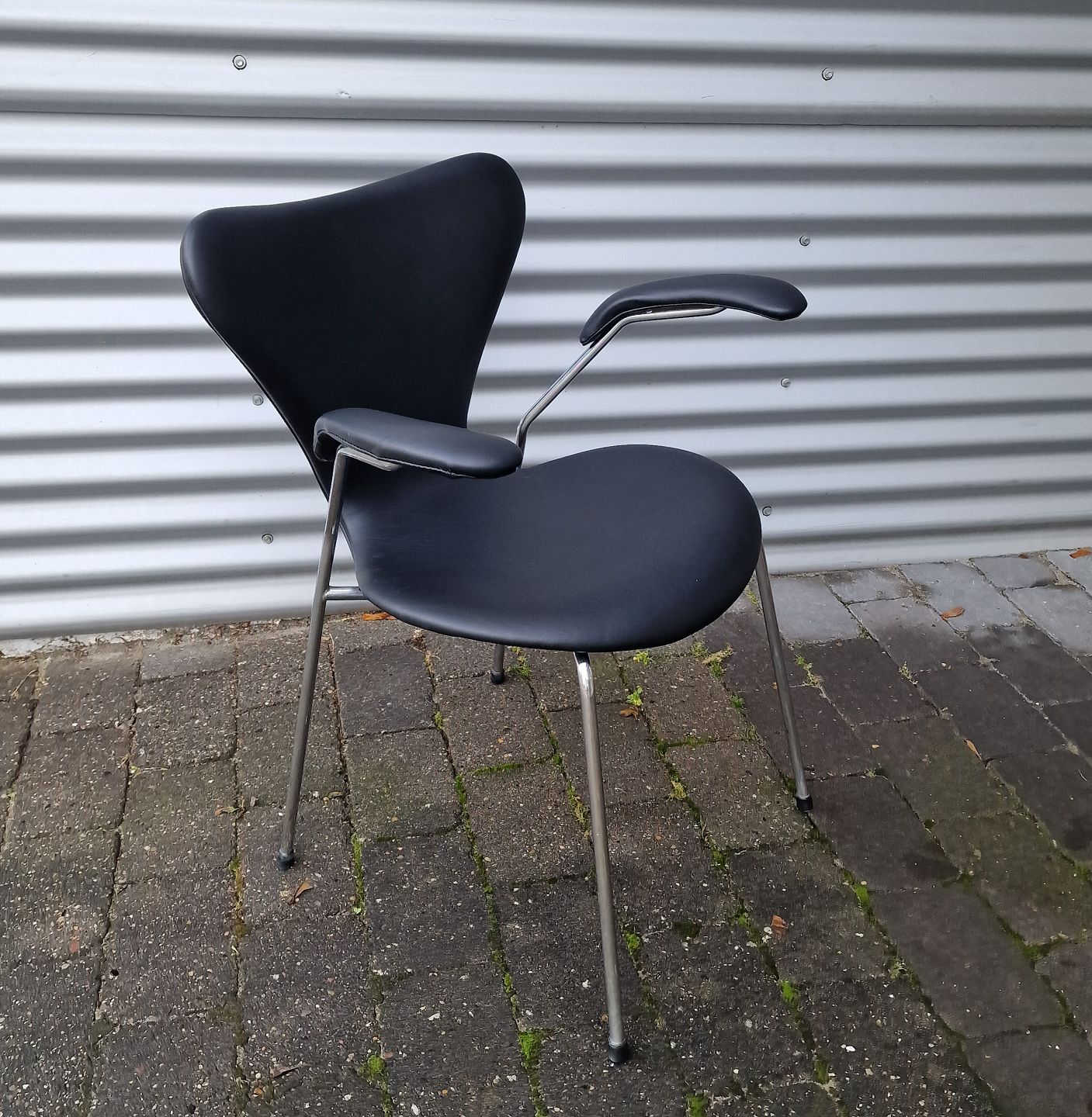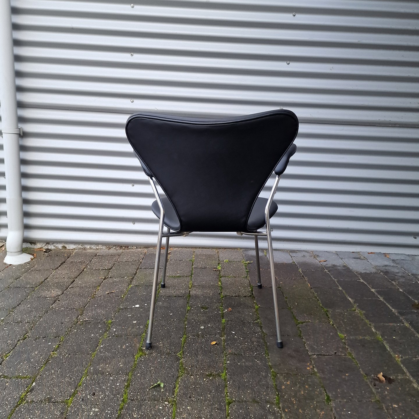 Stol i læder med metalben. 7 stol nypolstret med sort læder.