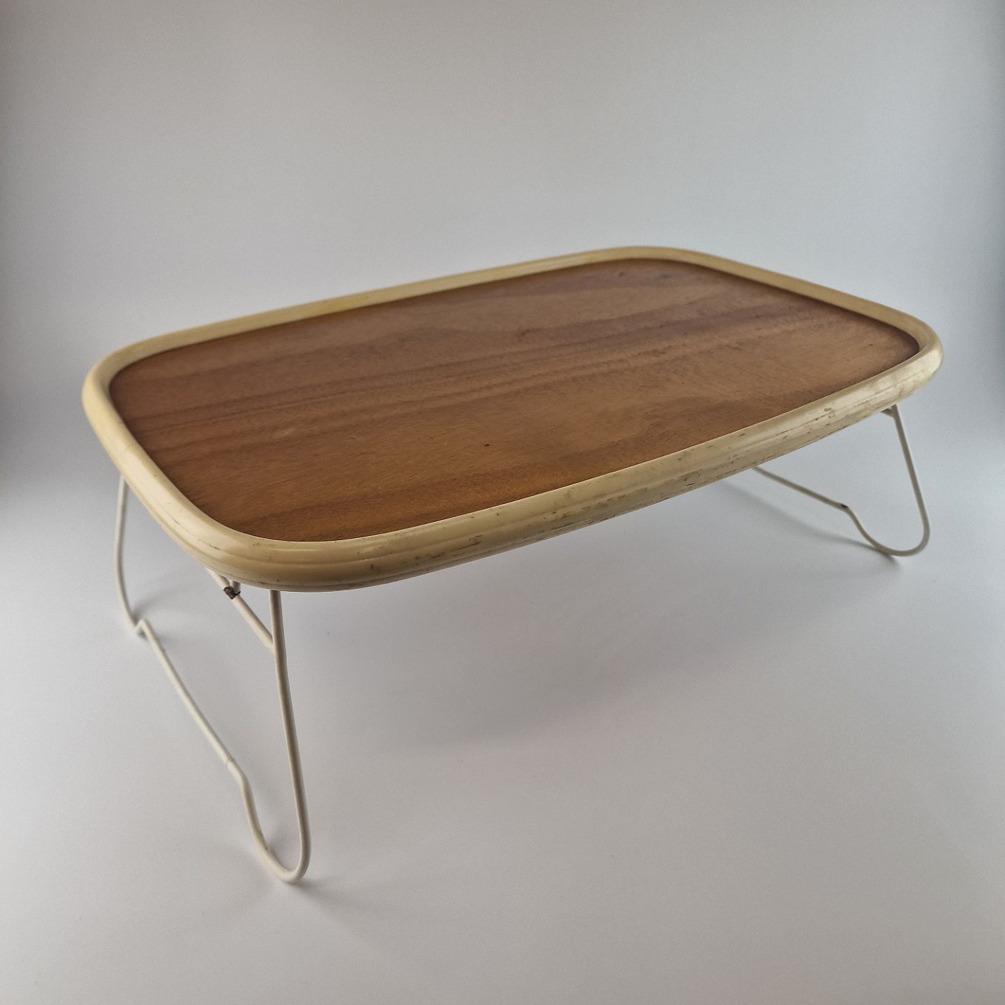 Brickbordet SEBA fra Sverige. Plade af teaktræ i ramme af plast og med ben af stål.