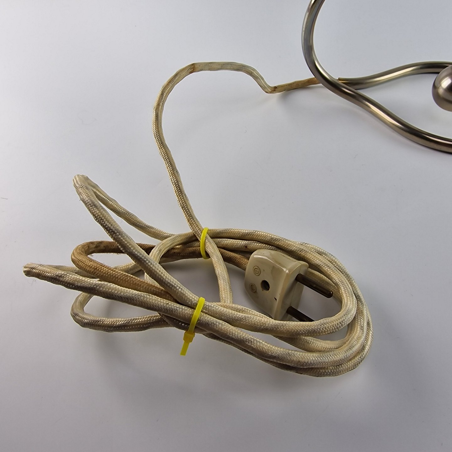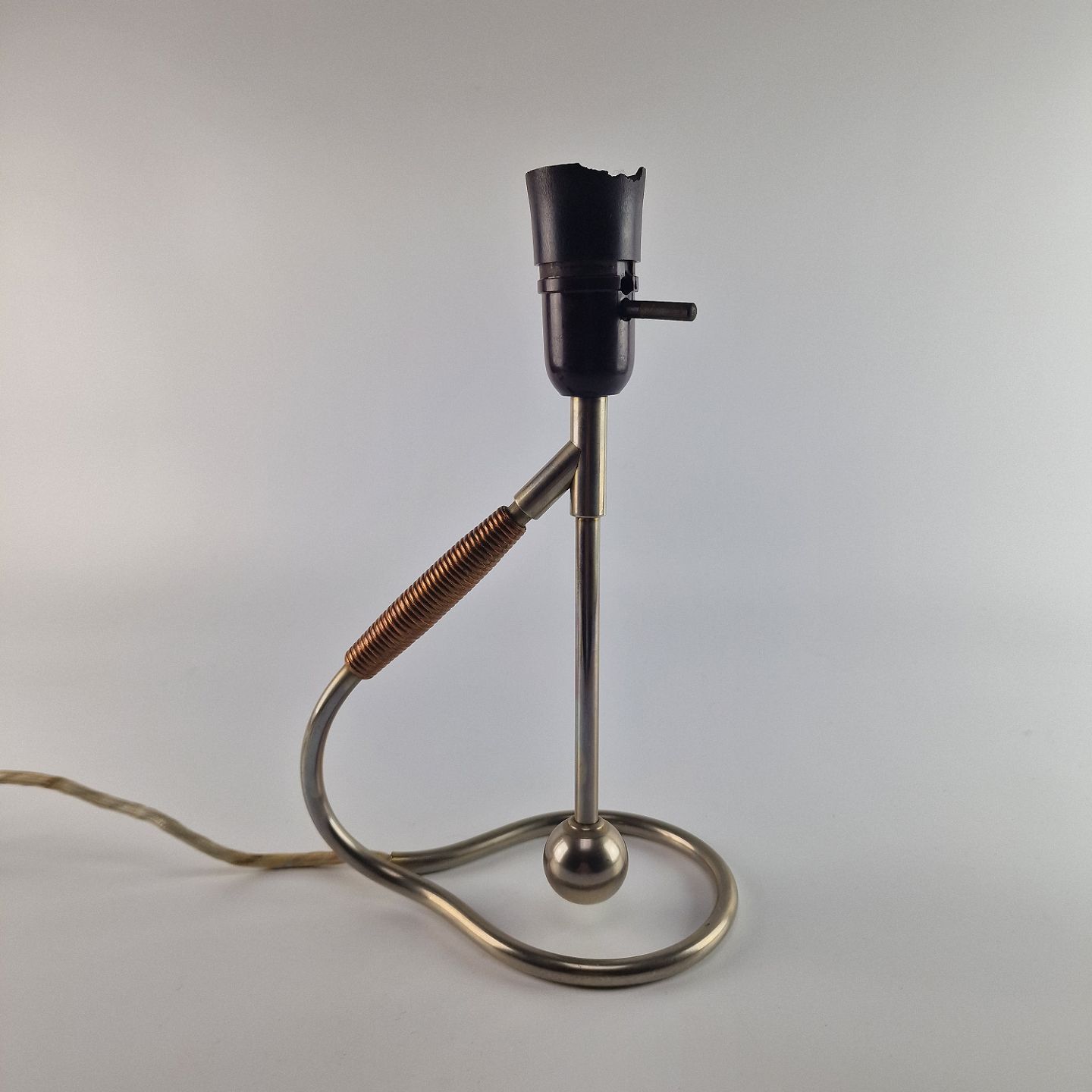 Lampe af stål. Pendulet kan drejes så lampen kan anvendes som væglampe.