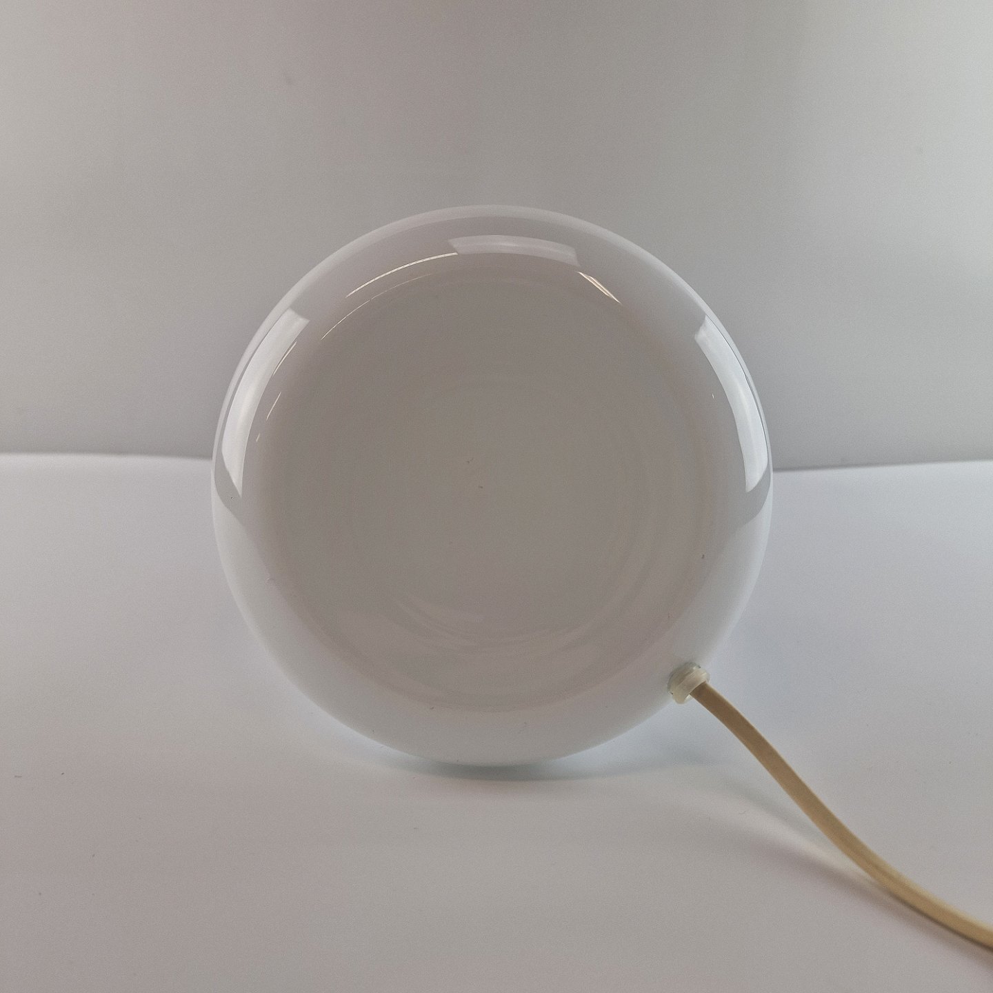 Mundblæst lampe af opal hvidt glas med lys grå streger