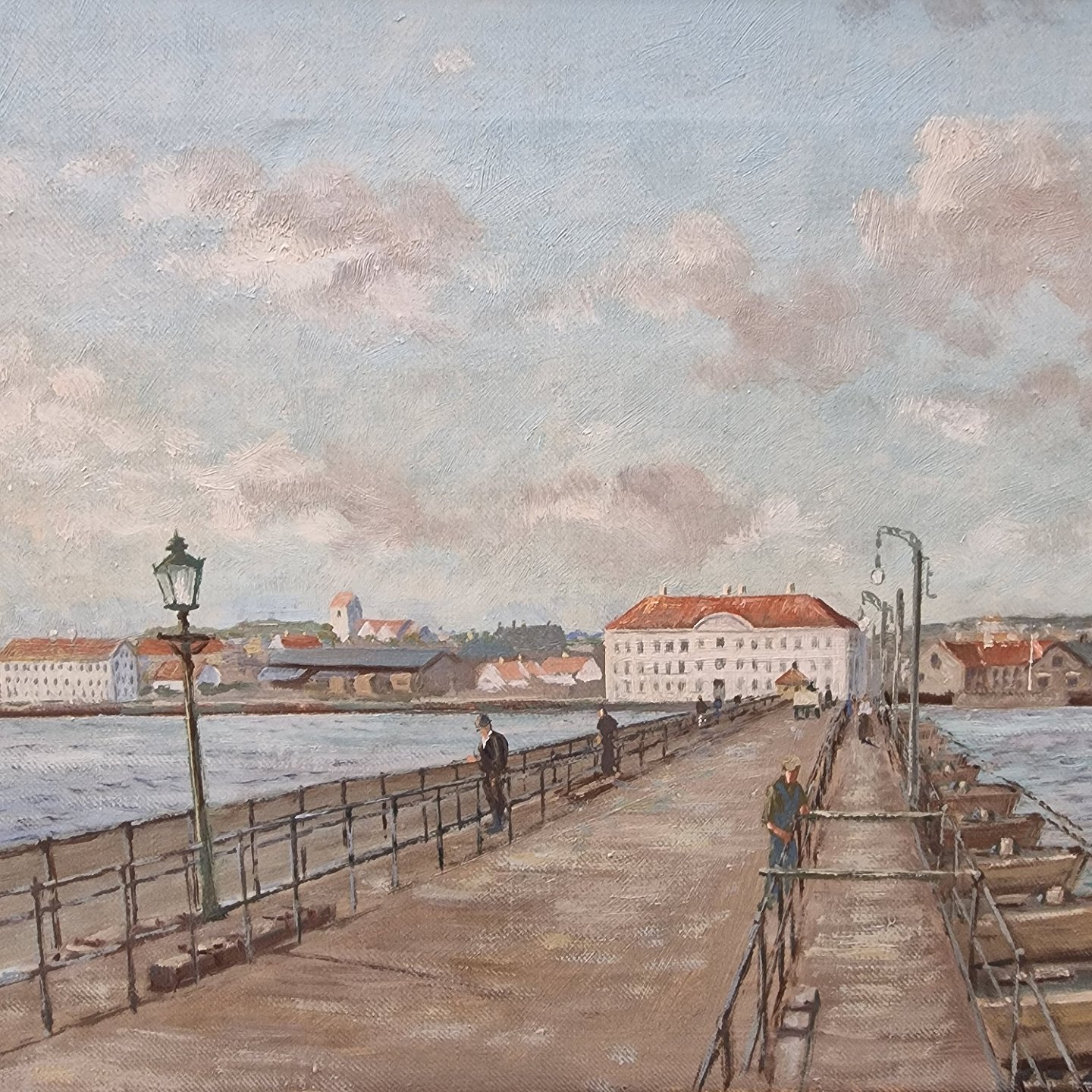 Maleri af protonbroen over Limfjorden med Hotel Royal på Aalborg siden
