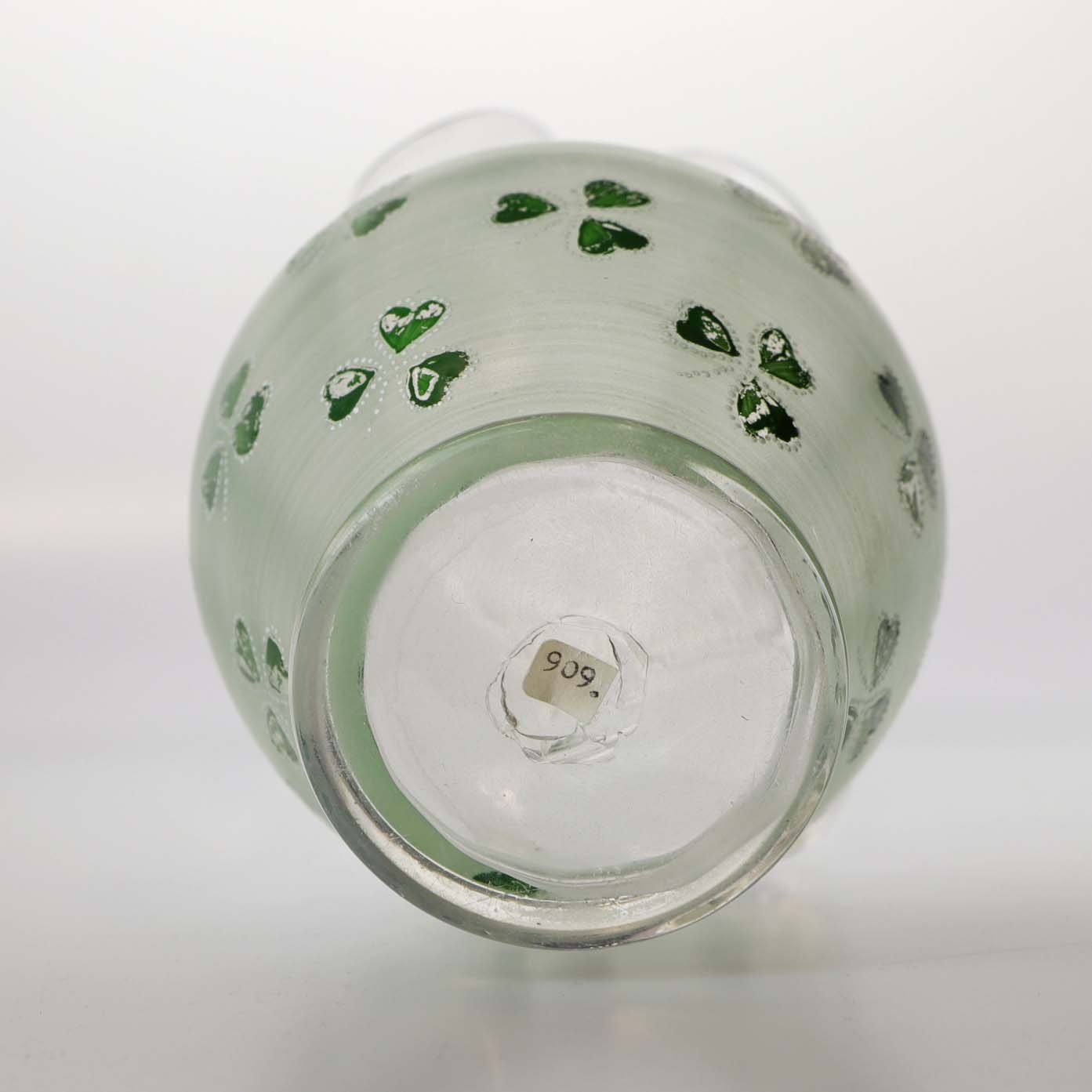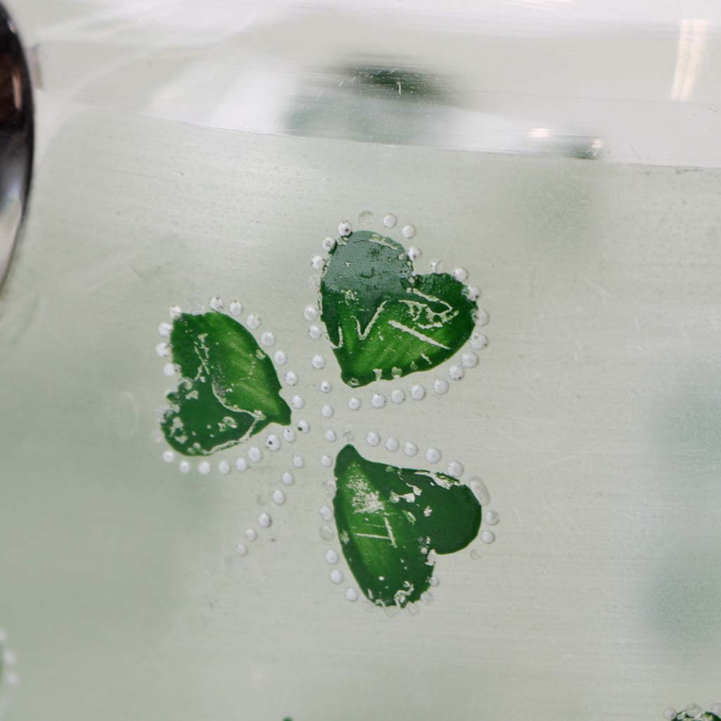Kande af glas med emalje malet trekløver