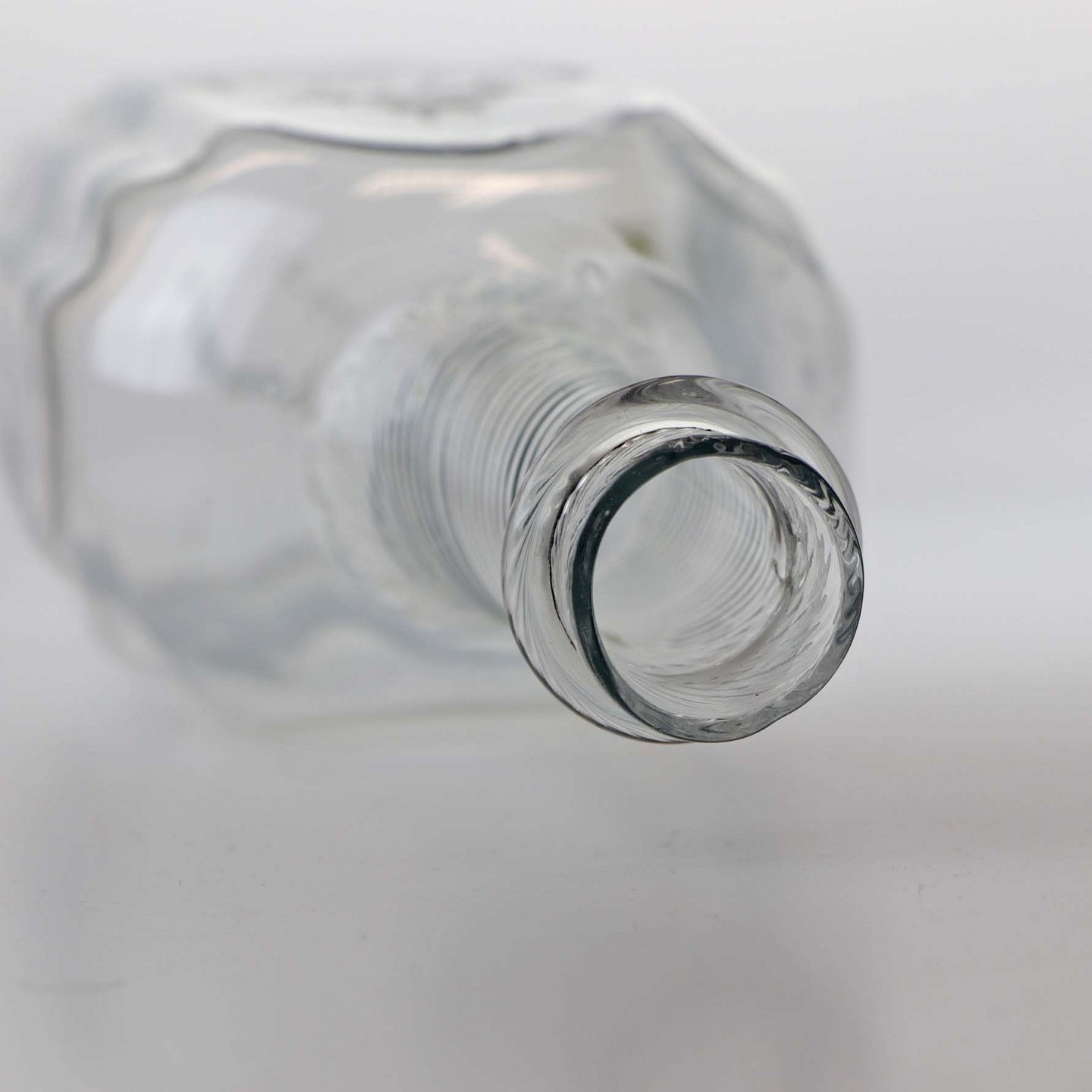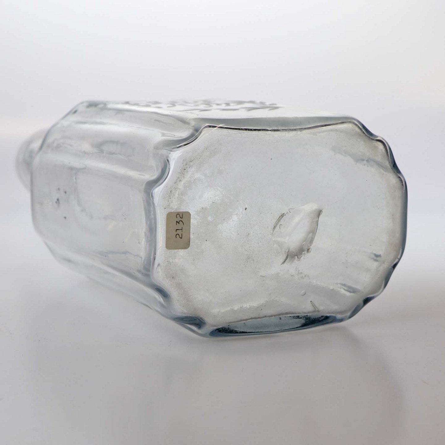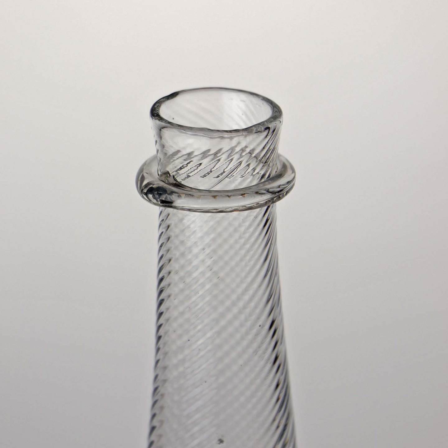 Karaffel med snoet hals. Initialerne I.N.F og K.T.D tyder monogram på ægtepar/brudepar