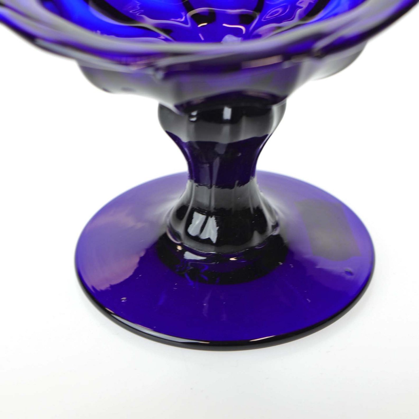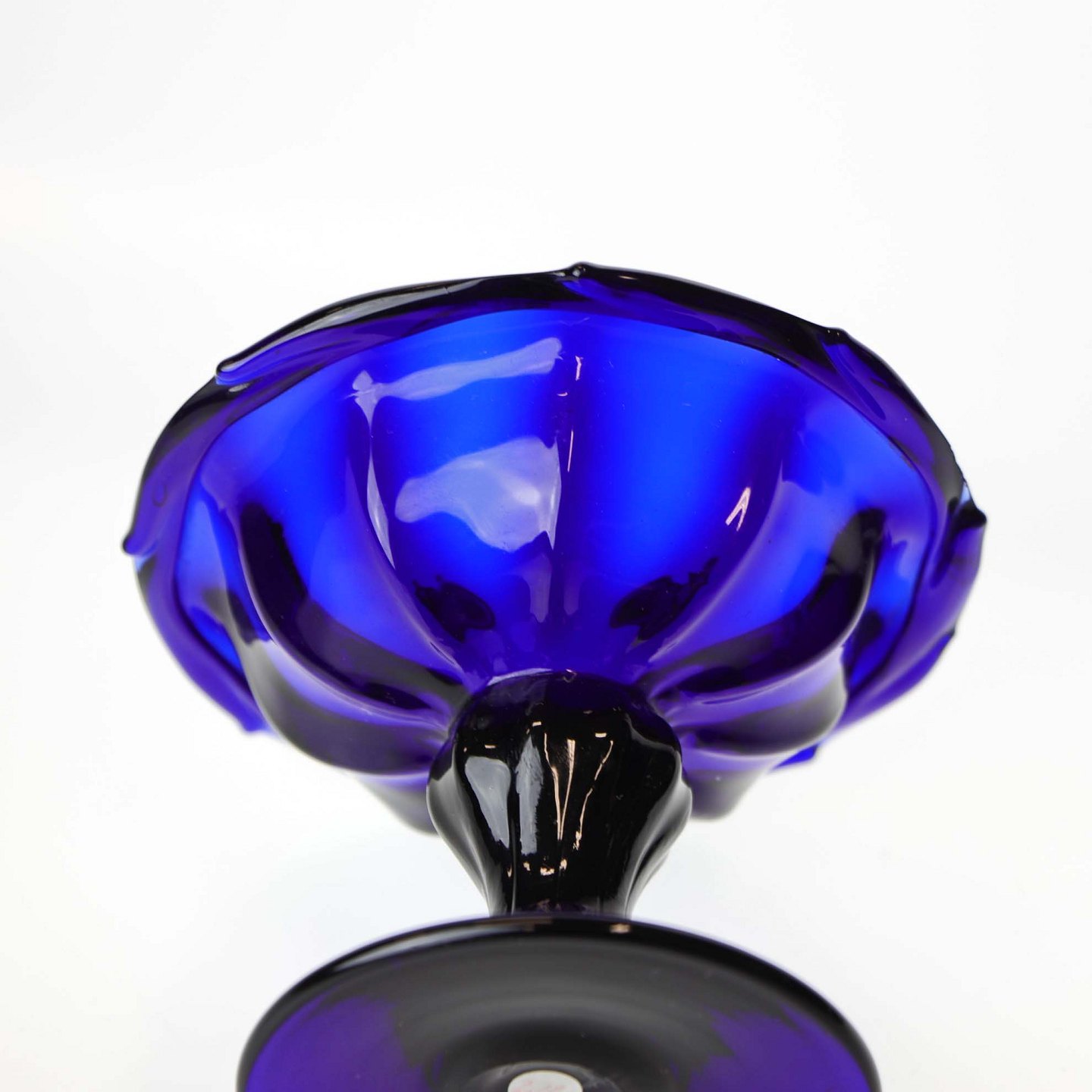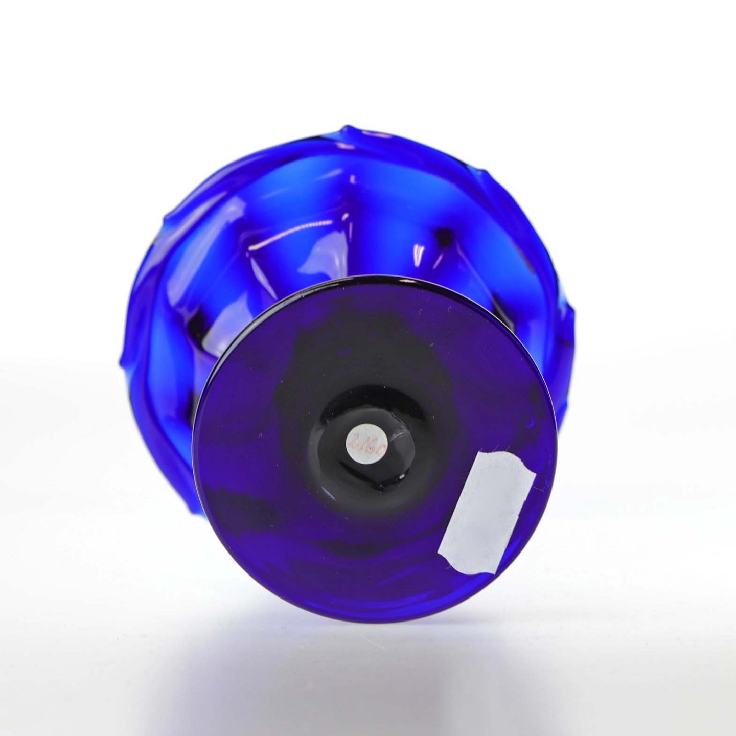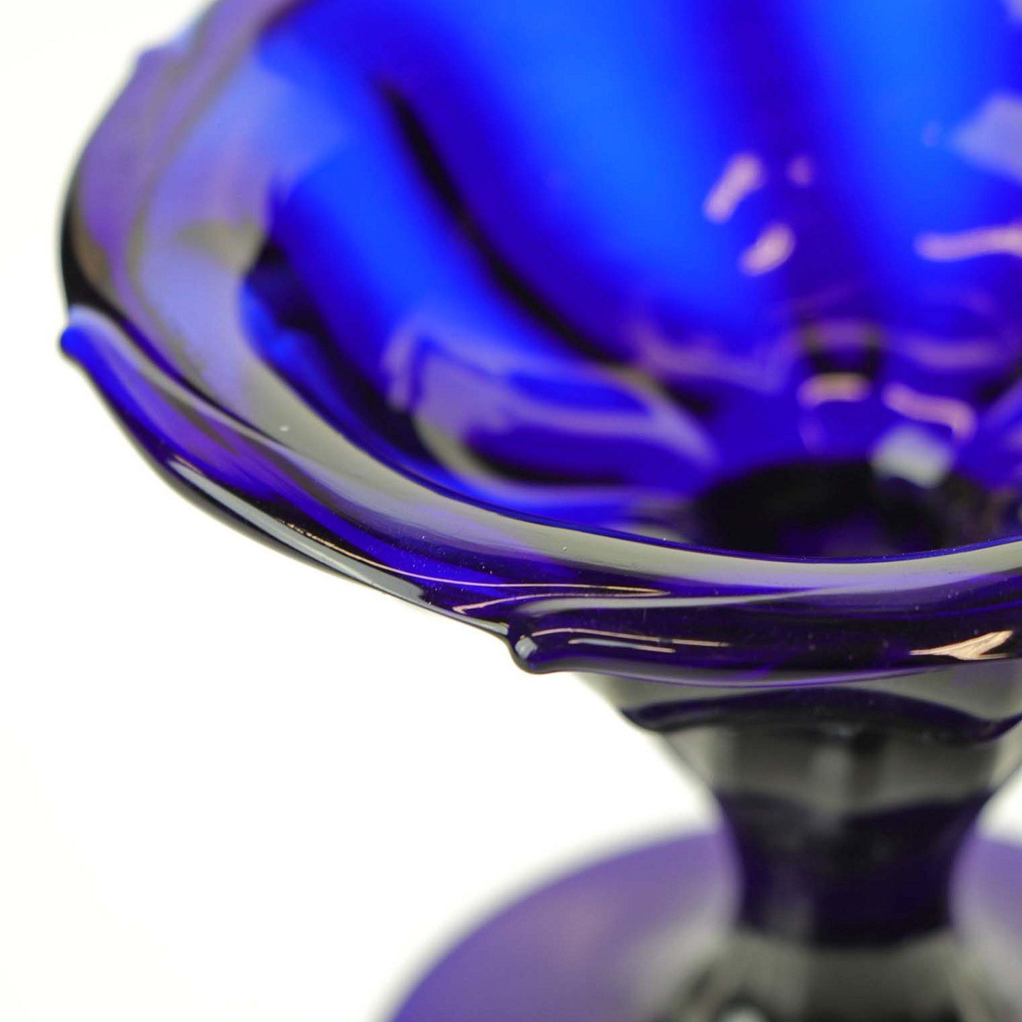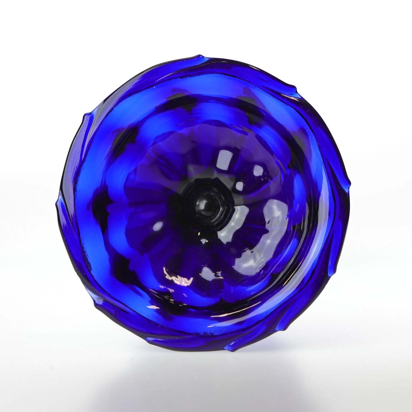 Sukkerskål i blåt glas med optiske striber og kantet form