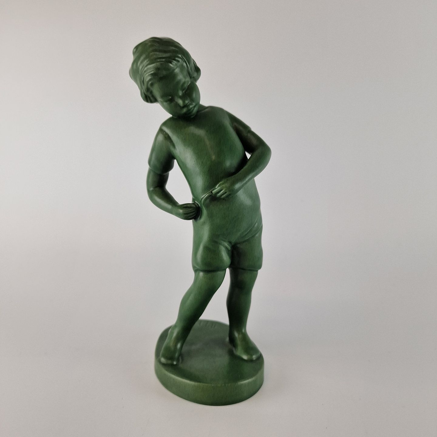 Grøn figur af en dreng som lyner sine shorts. No 110