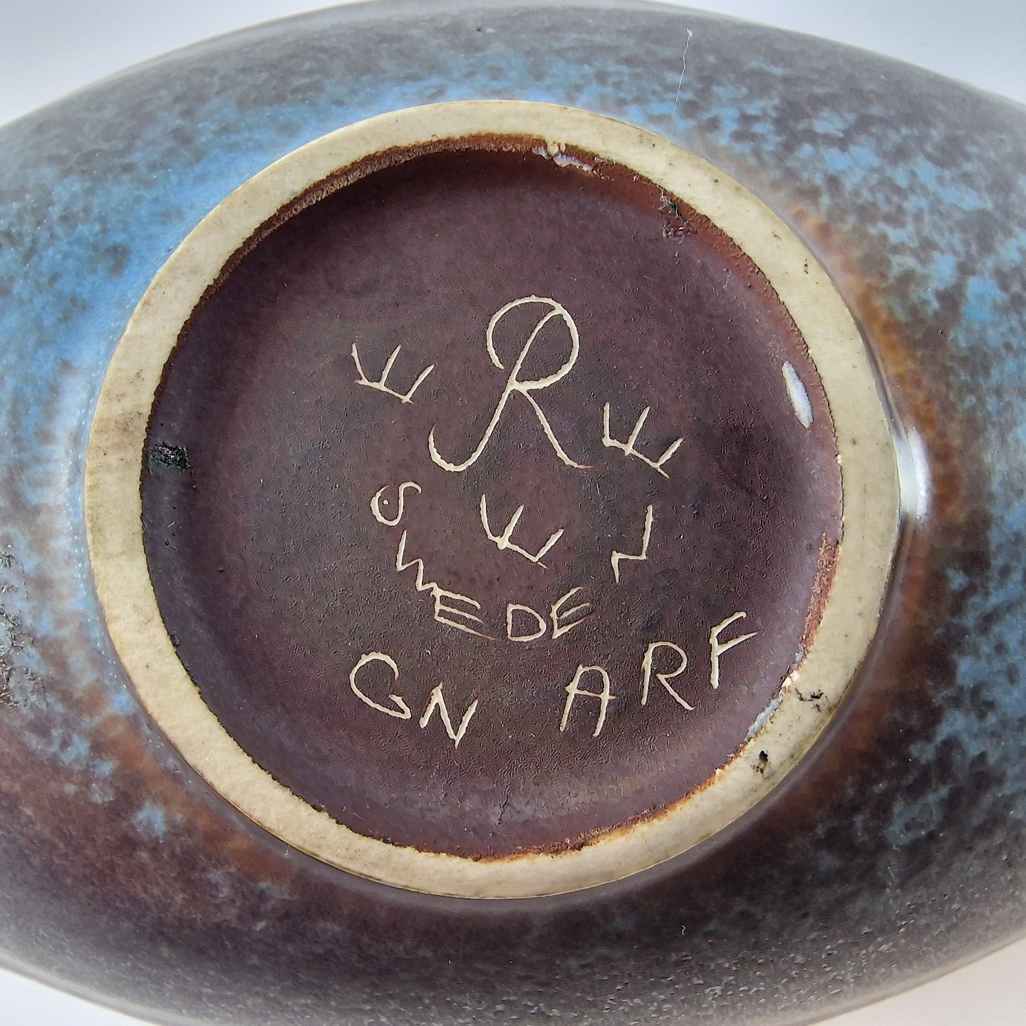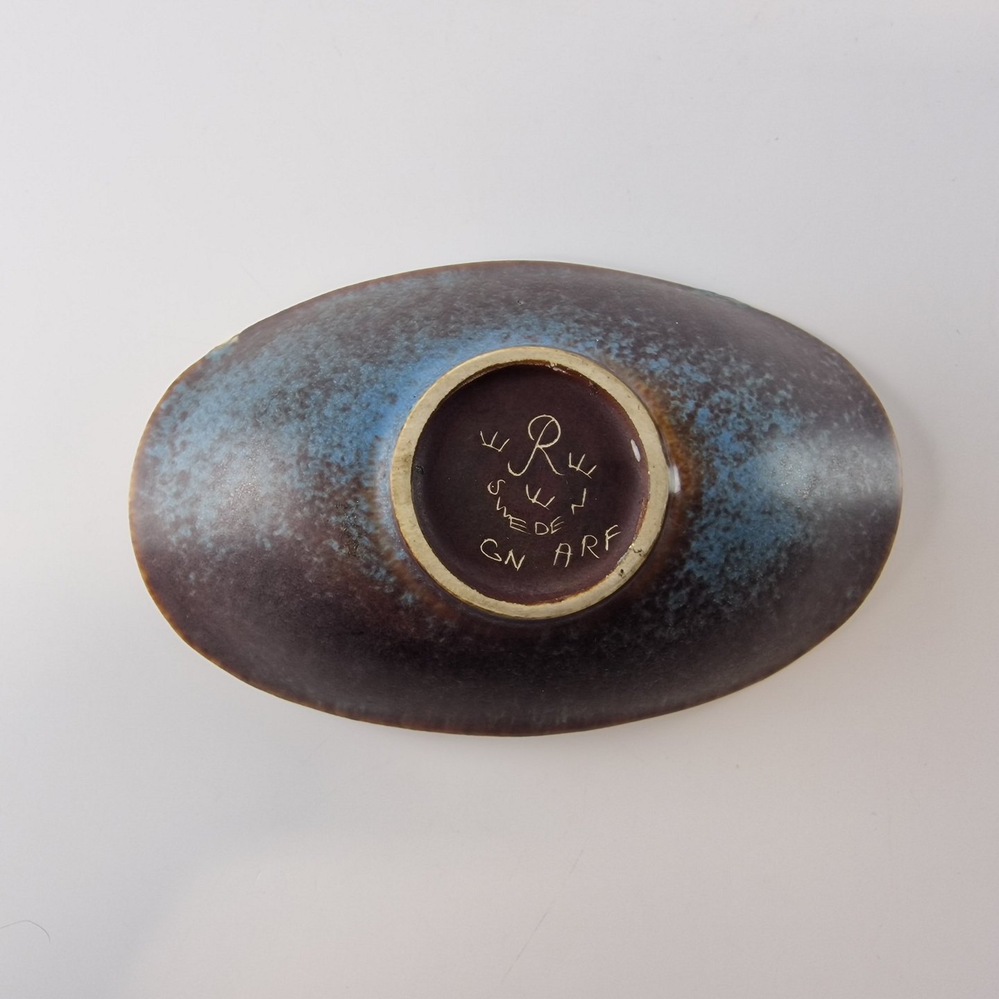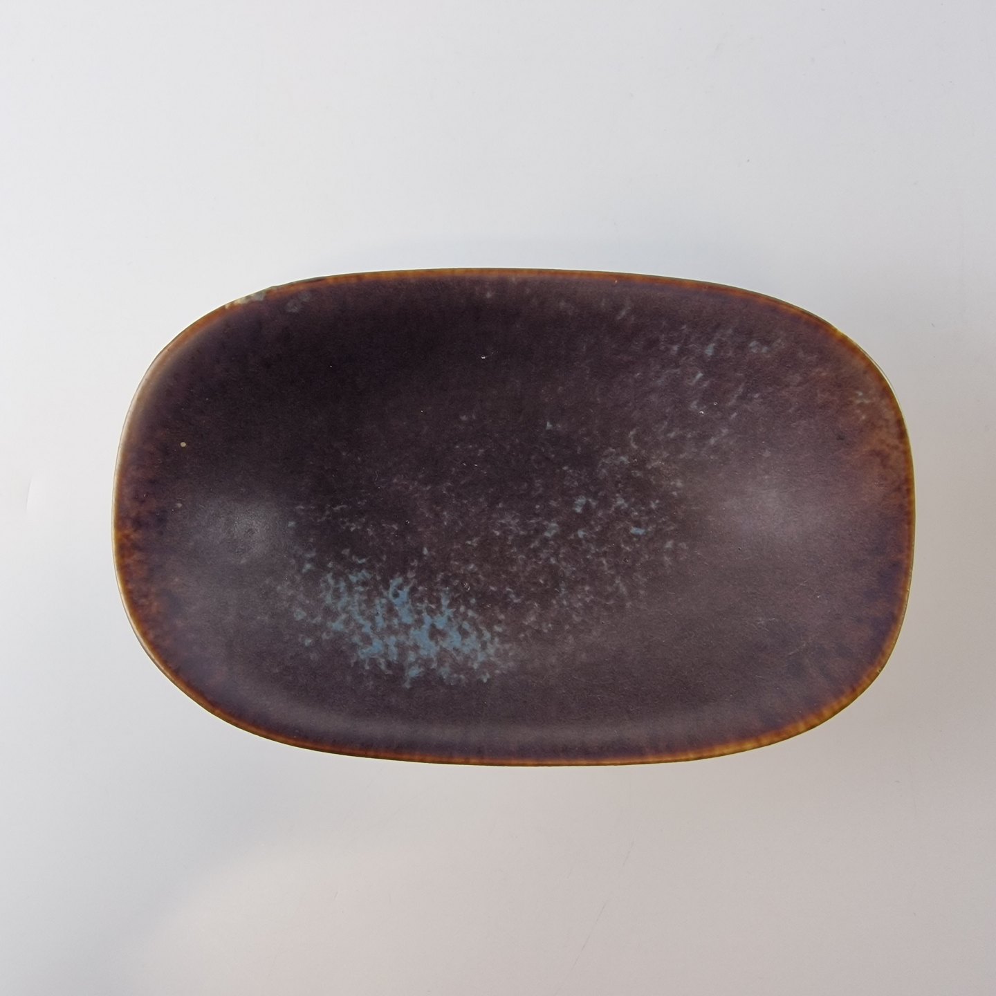 Brunlig glaseret skål med bølgende kant. Model ARF