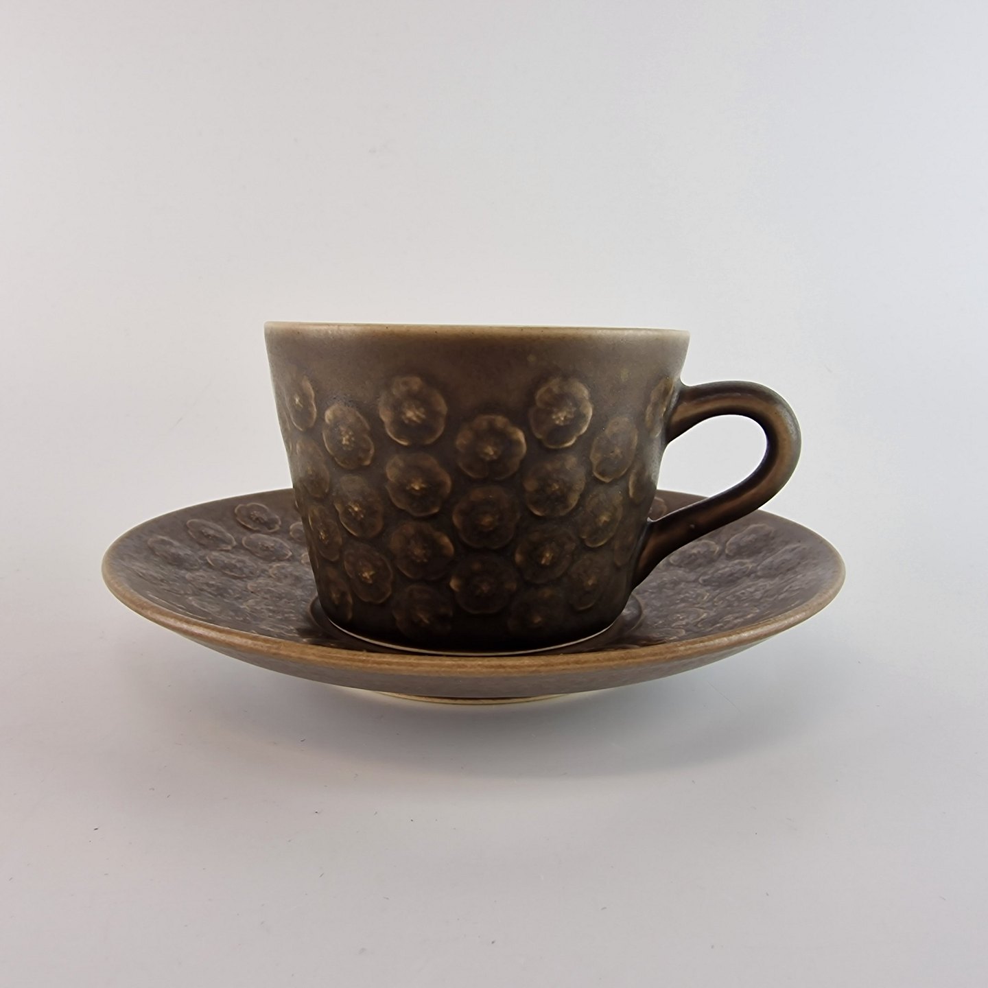Stel i brun stentøj med blomster motiver