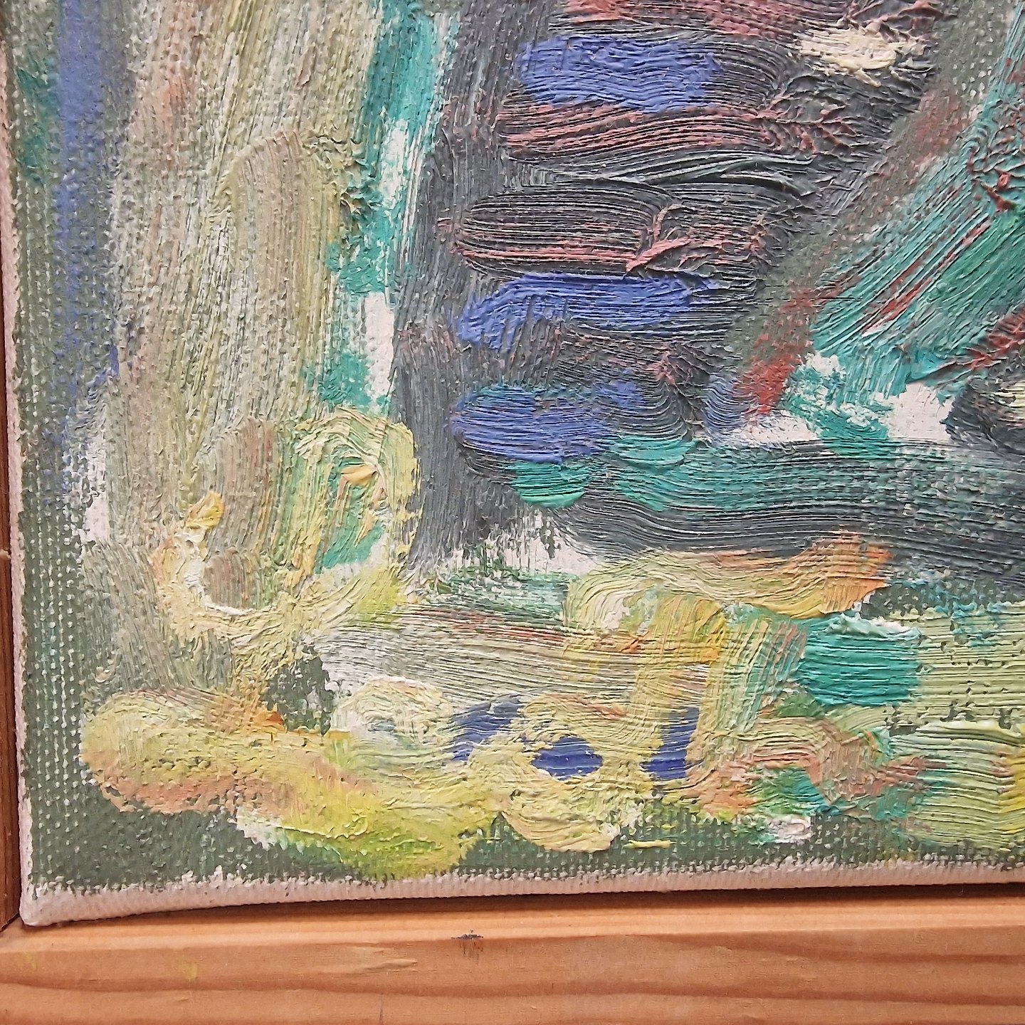 Motiv: Abstrakt mennesker som arbejder i marken. Hestetrukket landrug.